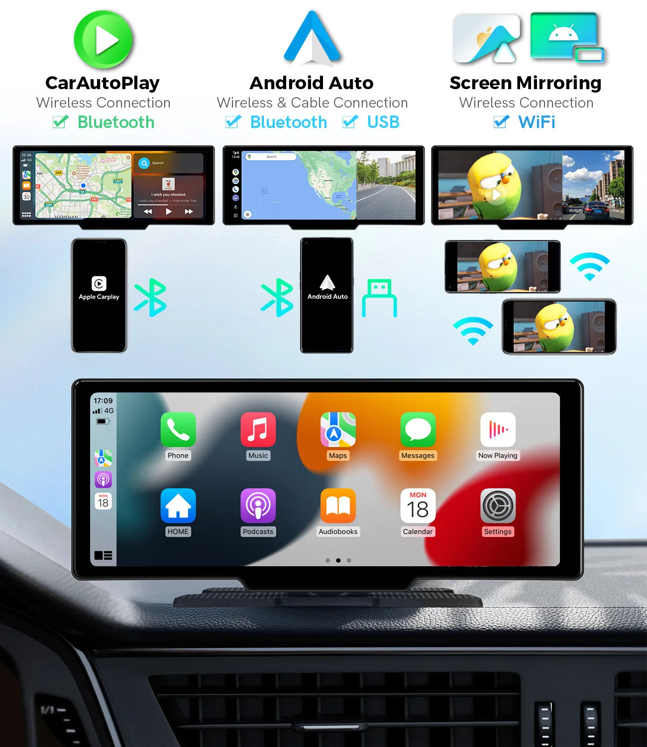 【Suggerimento】Nessuna telecamera per la retromarcia Buy LAMTTO 7 inch Carplay Screen for Apple Carplay Android Auto Wireless , Mirror Link, Live Navigation, Siri G00gle Voice Assistant, Touchscreen , Bluetooth 5.0, AUX, FM at UK. ... 7 Inch Wireless Car Stereo with Apple Carplay & Android Auto,Porta Il display per auto Volam Carplay Android è il secondo display più grande e puoi anche fare il mirroring di film, in modo che i bambini possano guardarli durante i viaggi più lunghi. 【Ultima A-pple Carplay Portatile con Assistente Vocale】Volam display Carplay con CarPlay wireless e Android Auto collega il tuo smartphone senza sforzo e porta le funzioni e le app al carplay da 7 pollici. Supporta SiGri/00gle Assistant e touchscreen da 7 pollici per effettuare chiamate, inviare testi, navigare con le mappe e ascoltare musica facilmente. 【Comodo e conveniente】Questa installazione portatile a-pple Carplay richiede solo 3 minuti, non è necessario rimuovere le apparecchiature esistenti o assumere professionisti. [Modelli di auto incompatibili]-T0yota; F0rd; H0nda; Volkswagen; V0lvo; S-eat; Re-nault; BM-W; Citr0ën; 0pel; Su-zuki; H0nda; Tri-umph; Ya-maha;Te-sla ) E sono disponibili 3 ulteriori metodi di uscita audio: ① Connessione AUX: basta collegare il cavo audio in dotazione alla porta AUX della vostra auto. Trasmissione FM. ③ Lo schermo Carplay ha un altoparlante incorporato. La schermata A-pple Car Play supporta Siri e l'assistente G00gle per avere le mani libere. Android Auto ESSGOO A-pple CarPlay & ,9 Inch IPS Carplay Android Auto Wireless 【Qualità del Suono Stereo Bluetooth 5.0】 le opzioni di uscita audio migliorate consentono una connessione diretta con il Bluetooth dell'auto per un'esperienza audio senza perdite. Lasciati guidare dagli altoparlanti dell'auto con navigazione vocale.