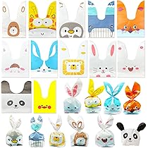 Koonafy 70 Pezzi 14 Stili Di Animali Sacchetto Porta Caramelle Forma Del Coniglio Sacchetti Di Biscotto Plastica Sacchett Per Natale, Nozze, Festa