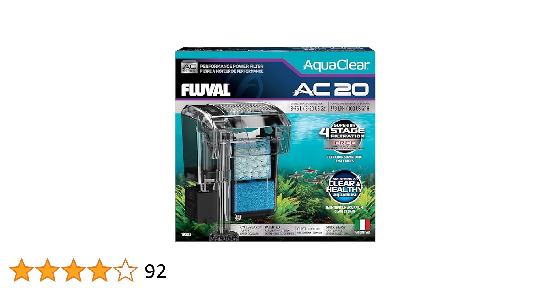 Fluval Aqua Clear 50 Fluval Zeo-Carb For AquaClear AC20/AC30 Power Filter - 6.3 Oz / 180 G - 3 Count (Pack Of 1 Acquario 40 Litri CycleGuard preserva l'equilibrio biologico del tuo acquario sostituendo autonomamente i mezzi, evitando l'interruzione del ciclo dell'azoto ed è essenziale per mantenere l'acqua pulita e sana. Controllo del flusso regolabile per una regolazione precisa La portata massima del filtro in un acquario può raggiungere i 250L/H, ideale per acquari di 20-40 cm. Funzionamento silenzioso, il rumore di lavoro è inferiore a 45dB. ... Fluval AquaClear AC20, Filtro Zaino per Acquario 379 lph . Filtrazione a 4 stadi Il sistema di infiltrazione brevettato prolunga il tempo di contatto con il mezzo per un acquario più pulito, sano e biologicamente stabile.