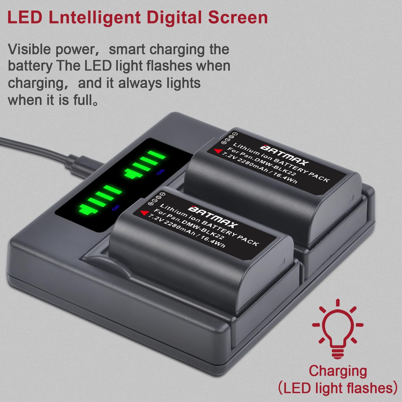 Ricarica con sicurezza sapendo che le tue batterie sono protette. 【Ricarica rapida da 18 W, capacità estesa】 Sperimenta una ricarica rapidissima con il nostro caricabatterie abilitato alla tecnologia QC3.0 e PD3.0 da 18 W, il 50% più veloce dell'originale. Panasonic Dc Gh5s S5 Battery Llano DMW-BLK22 Carica Batteria Rapido E 2 * 2320 MAh Battery Pack Con 2 USB Lumix S5 Ii Più opzioni significano più comodità per i tuoi viaggi e il tuo lavoro. Perfetto per fotografi, vlogger e videografi. Il nostro set include due batterie da 2320 mAh che forniscono energia per un massimo di 231 scatti e 3 ore di tempo di ripresa totale (standard CIPA). 【Rilevamento istantaneo del livello della batteria】Rimani informato sullo stato della batteria con il moderno display digitale del nostro caricabatterie DMW-BLK22. La visualizzazione intuitiva del flusso ti consente di pianificare le tue sessioni fotografiche in modo preciso e sicuro. 【Design straordinario, compatibilità universale】 Espandi il tuo viaggio fotografico con il set caricabatterie all'avanguardia DMW-BLK22 di llano, su misura per Panasonic Lumix S5, S5II, S9, GH6, S5IIX, GH5 II, S5M2, S5M2X, GH5M2, DC-S9, DC-G9, IIDC-S5, DC-S5 II, Batteria per fotocamera DC-S5 IIX