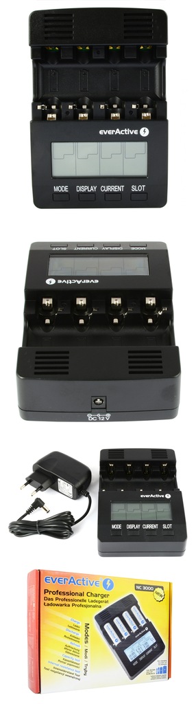 Design avanzato: Minimizza l'effetto di riscaldamento delle batterie durante la ricarica Rileva batterie scariche: Rileva e ricarica batterie completamente scariche Microprocessor-controlled charger NC-3000 can charge and discharge Ni -MH and Ni - CD batteries of size AA ( R6 ) and AAA ( R03 ). 4 independent charging slots allow you to charge individual and mixed cell quantities. ... AA , AAA Battery ( Ni -Mh or Ni Carica e mantiene batterie: Carica e mantiene fino a 4 batterie R03/AAA o R6/AA Assicura lapleta installata la batteria, Modalità di scarico modificata: Verifica la capacità o l'energia persa delle batterie Compatibilità versatile: Funziona con una tensione di ingresso di 12V CC o AC (con adattatore) Nc 3000 è un caricabatterie che impressiona funzionalmente, superando le capacità delle soluzioni della concorrenza: †la tensione di ingresso è di 12 v cc (serie bc - 3v) - il più versatile - incluso l'adattatore ca (spina standard ue),sull'adattatore vendita auto è inoltre disponibile. †microprocessore con il rilevamento preciso dv (0dv) -. Batterie con elevata resistenza interna - questo significa che può caricare le batterie anche pesantemente usurati che gli altri ritengono caricabatterie difettoso †modificata modalità di scarico - consente di verificare la capacità, ad esempio alcaline o controllare il / energia persa accumulato (mah) di batteria dopo ogni momento. Carica Batterie Aaa Everactive Caricabatterie EverActive NC-3000 (Nessun Dato Carica Batterie Mah