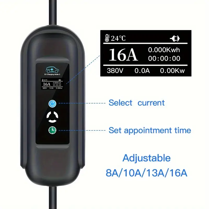 Caricabatterie Portatile EV 8/10/13/16A 11KW Tipo 2 Wallbox Tuya APP Control Set Tempo Di Ricarica Per Auto Ibride Per Veicoli Elettrici Ue