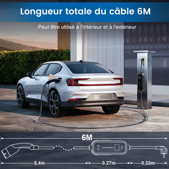 Cavo Per Auto Elettriche FNRIDS Cavo Ricarica Auto Elettrica Tipo 2, 11kw Caricatore EV Tipo 2, Ricarica Temporizzata,6/8/10/13/16A Corrente Regolabile Caricabatterie Per Auto Elettrica,6m Con Borsa, Spina CEE A 3 Fasi Presa
