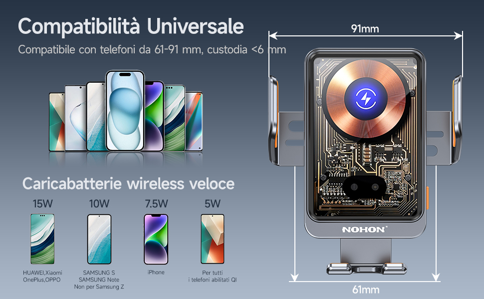 Non ti troverai mai più nella scomoda posizione di non riuscire a togliertelo. 【STABILITÀ E COMPATIBILITÀ】Il supporto per caricabatterie per auto wireless può essere fissato saldamente alla presa d'aria per garantire stabilità. Caricabatterie da Auto Wireless Ultra Veloce da 15 W]Il caricabatterie da auto wireless e il supporto per telefono da auto Olycism sono compatibili con tutti i telefoni abilitati Qi. Incluso Samsung Galaxy Z Flip5/4/3/2, Note20/Note 20 Ultra/10/9/8, Gala 【Supercondensatore】Il caricabatteria wireless per auto ha un nuovo supercondensatore integrato e la batteria immagazzinerà automaticamente l'energia quando si utilizza la stazione di ricarica wireless per auto. 【Caricabatterie wireless Qi veloce da 15 W】 Il caricabatterie wireless Olycism QI e il supporto per telefono sono compatibili con tutti i telefoni abilitati Qi. Compatibile con tutti i telefoni cellulari da 4 pollici a 6,9 pollici. Anche su strade sconnesse, il telefono e il supporto non si allentano né si muovono. 【2 metodi di ricarica】 Caricabatteria per auto wireless 15 W, compatibile con la maggior parte dei telefoni cellulari con funzione di ricarica wireless e può essere ricaricato rapidamente (Nota: a seconda del protocollo di ricarica wireless, l'efficienza di ricarica delle diverse marche di telefoni cellulari è diversa); Per coloro che non dispongono della funzione di ricarica wireless, il telefono cellulare può essere caricato utilizzando le 3 testine di ricarica magnetiche che forniamo. La rotazione a 360° della palla offre molteplici posizioni per poterla utilizzare con qualsiasi angolazione. I bracci tenditori sono più stabili e tecnologicamente avanzati rispetto ai prodotti più vecchi e non si riaprono da soli. Supporto Per Telefono Auto Olycism 15W Dual Coils Caricatore Wireless Per Z Fold 5/4 Car Wireless Charger Auto Compatibile Con Samsung Galaxy Z Fold 5 4 3 2 Porta Cellulare AutoRicarica Ventosa/Air Vent : Amazon.it: Elettronica Supporto Telefono Auto