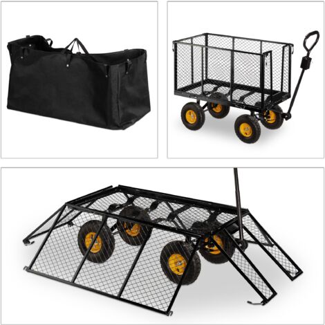 Carrello Con Ruote Portatutto Relaxdays Carretto Da Giardino, Grande Carrello Con Sponde Pieghevoli, Telo Estraibile Con Manici, Fino A 500 Kg, Nero | Leroy Merlin Raccogli Foglie Da Giardino