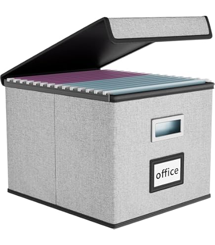 Scatola per archivio multifunzionale: scatola per archivio sospesa, ideale per conservare circa 15 cartelle sospese in formato A4. Può essere utilizzata anche per riporre vestiti per bambini, libri e giocattoli. Adatto per raccoglitori Letter Size. Scatola per archivio multifunzionale: scatola per archivio sospesa, ideale per conservare circa 15 cartelle sospese in formato A4. Può essere utilizzata anche per riporre vestiti per bambini, libri e giocattoli. Ideale per casa e ufficio. Adatto per racc Le maniglie in metallo su entrambi i lati consentono di spostare facilmente la scatola e l'etichetta su un lato facilita la classificazione. Etichette frontali per una memorizzazione versatile dei file. Adatto per raccoglitori LETTER SIZE. Colore: nero. Dimensioni dopo la chiusura della copertura: 37,5 x 33 x 28 cm. Scatola per documenti migliorata: la scatola per documenti è realizzata con materiali e tessuti migliorati, più durevoli. Design funzionale: la lavagna multifunzione e altamente funzionale funge da piccolo armadietto per l'organizzazione di documenti, documenti fiscali, per conservare opere d'arte per bambini e altre esigenze di ufficio o di casa. File Storage Manager è costituito da un pannello MDF di alta qualità, che ha un migliore supporto e capacità portante. Cartelle Sospese Carrello Per Con Coperchio - DURABLE: Per 100 Cartelle Scatola Nera Con Coperchio