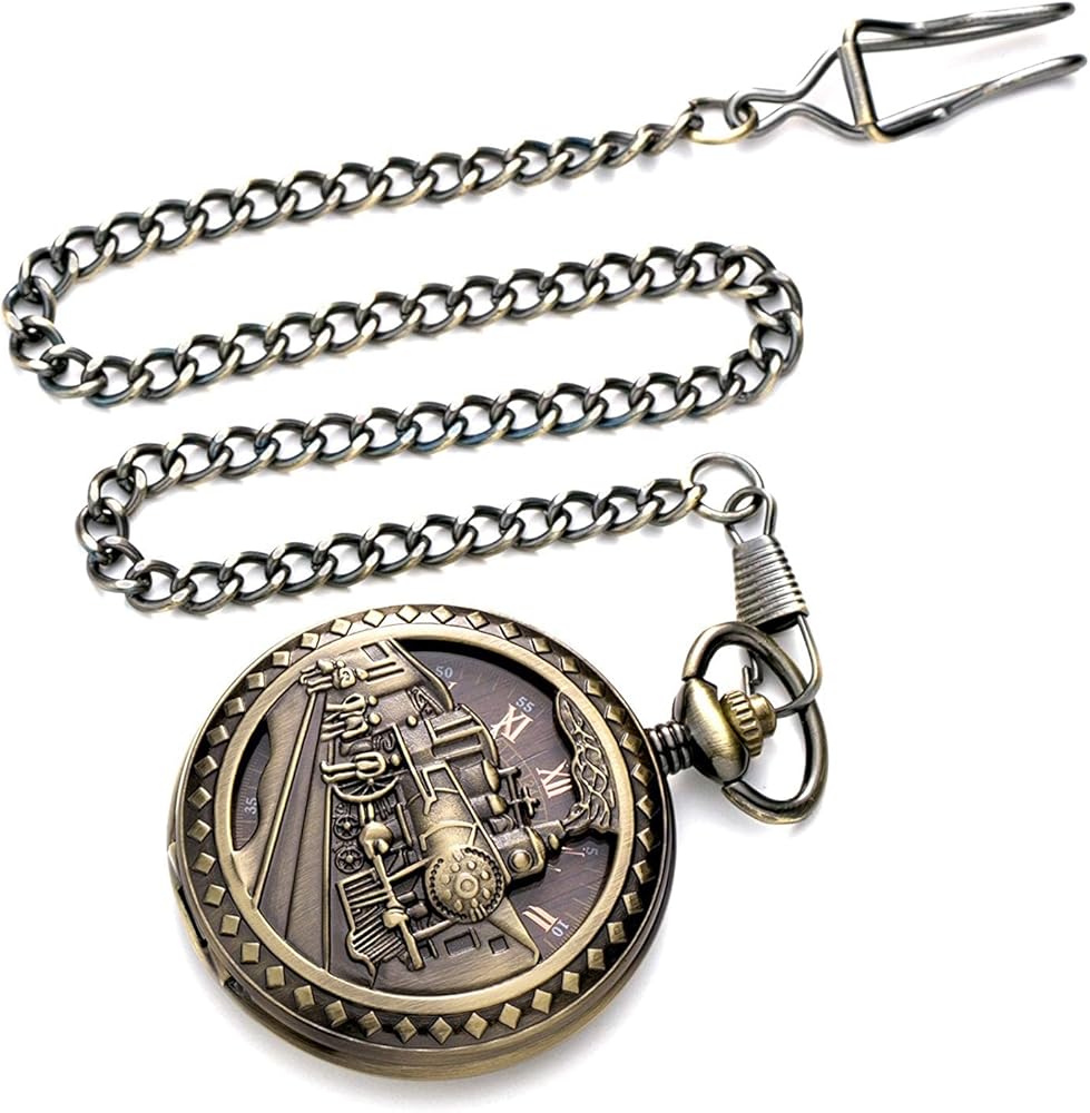 Carrie Hughes Reloj De Bolsillo Mecánico De Tren De Vapor Vintage Para Hombre Con Cadena En Caja CH108B, CH108B, Retro, Moda, Casual, Negocios, Steampunk : Carrie Hughes