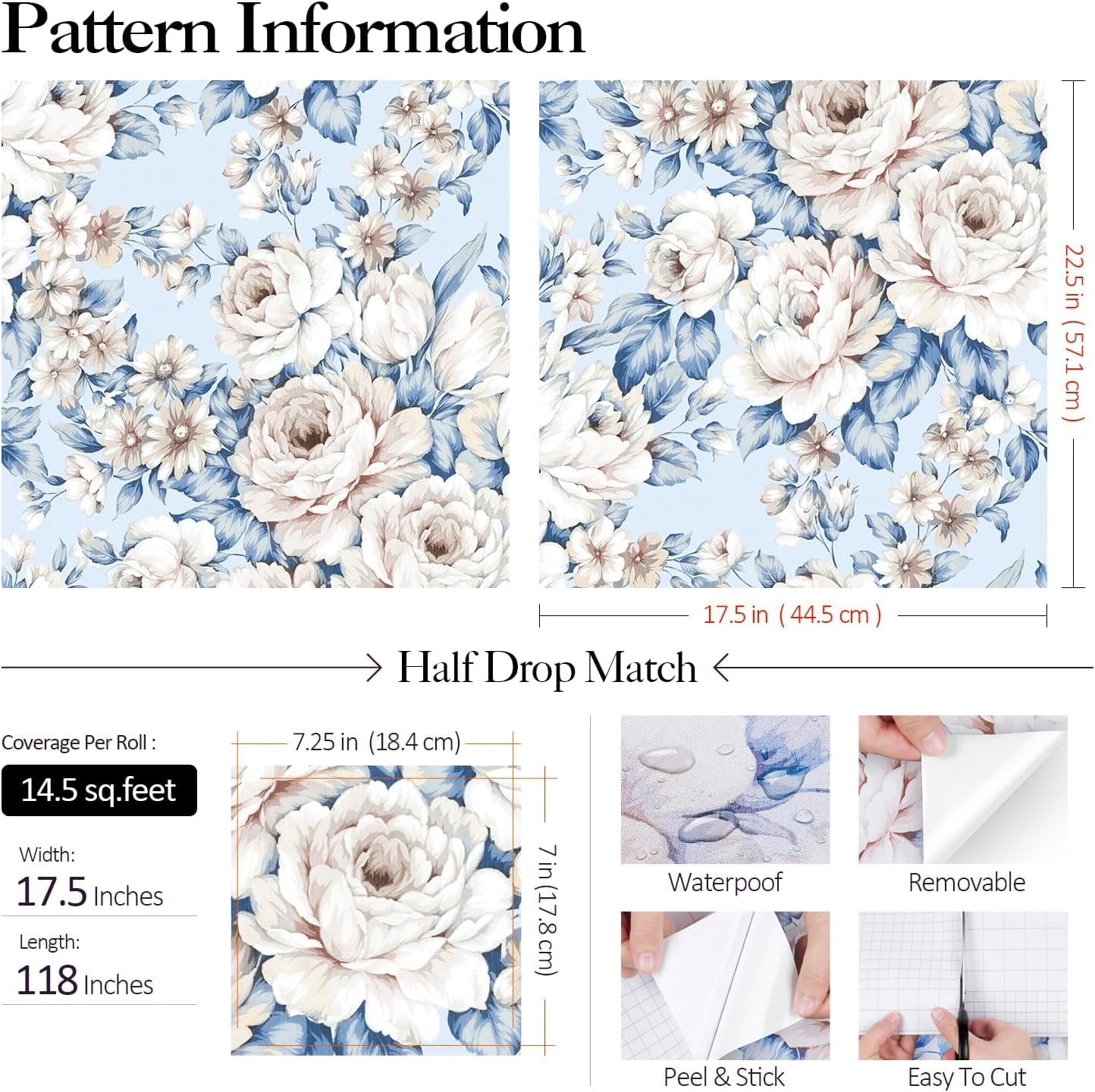 FunStick 44.5CM×9M Carta Da Parati Adesiva Muro Floreale Blu Acquerello Pellicola Adesiva Blu Rivestimento Adesivo Per Mobili Cucina Rosa Peonia Carta Adesiva Floreale Blu Adesivi Murali Soggiorno : Amazon.it: Fai Da Te