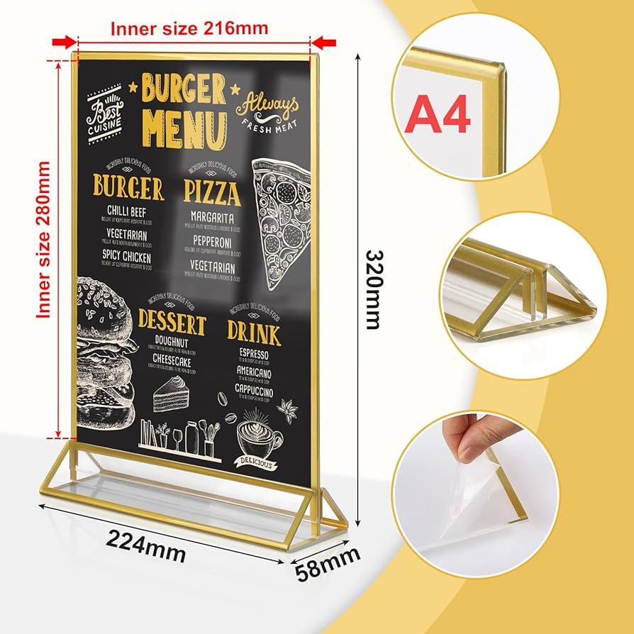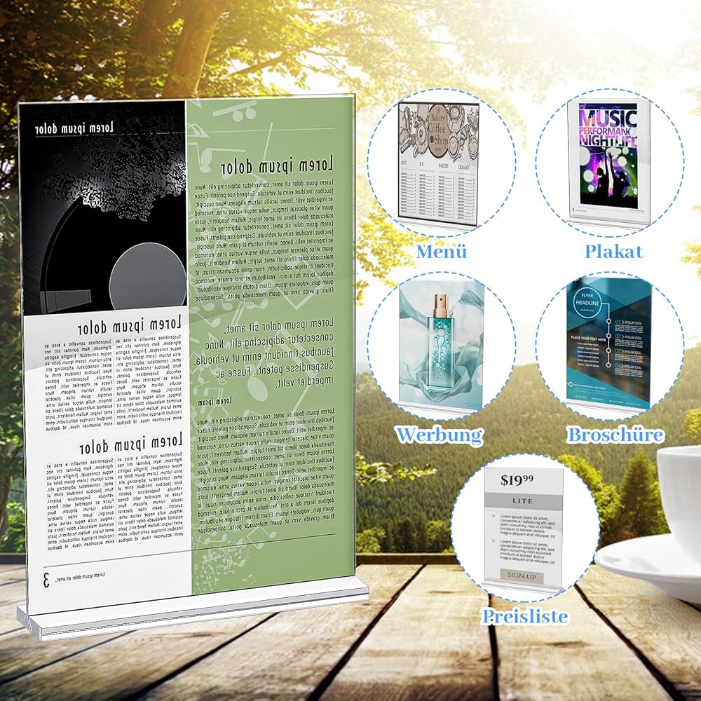 2 Espositori Da Tavolo A4, Cartellini Dei Prezzi, Formato A4, Supporto Da Tavolo In Acrilico, Supporto A T Per Opuscoli, Menù Per Ristoranti