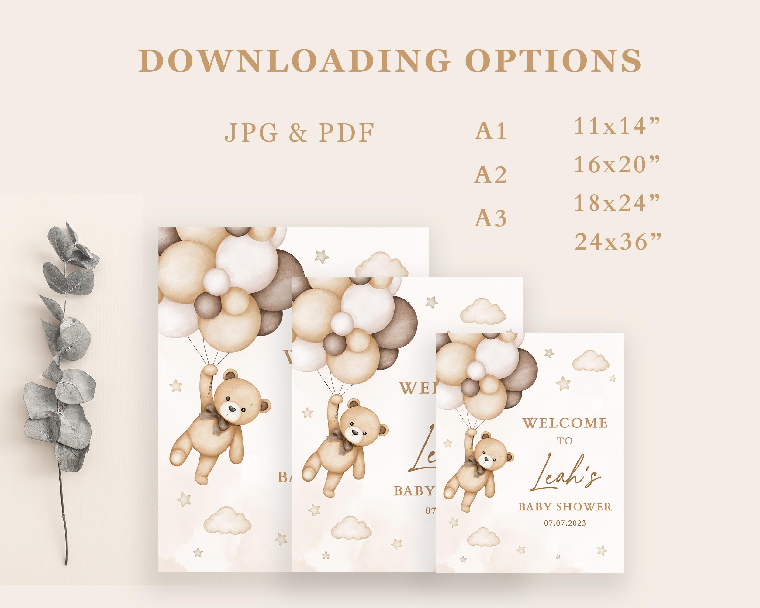 Modello Di Cartello Di Benvenuto Per Baby Shower A Forma Di Orsetto, Cartello Di Benvenuto Per Baby Shower, Neutro Rispetto Al Genere, Decorazione, Blu, Bearly Wait, Palloncini, Orsetto, Carino - Italia