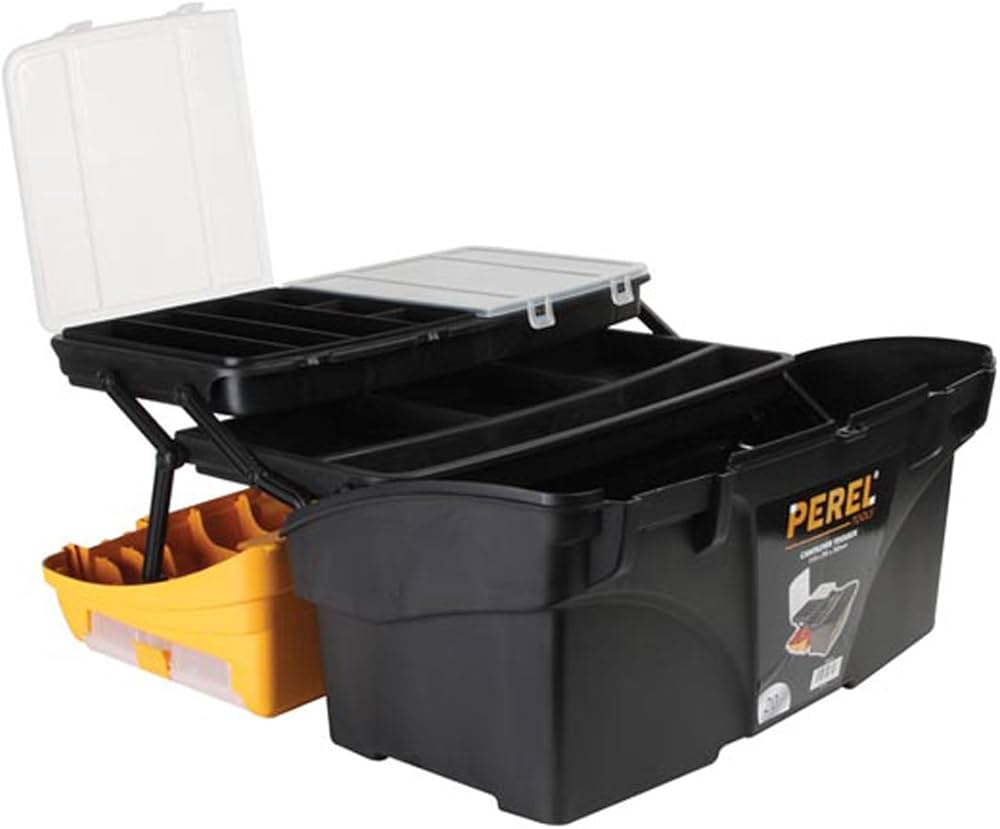 Perel Cassetta degli attrezzi, polipropilene, con vassoio rimovibile, maniglia pieghevole e chiusure in plastica, nero/giallo, 432 x 250 x 238 mm; Ignorar imágenes. Ref. 83625201. Perel Cassetta degli attrezzi, polipropilene, con vassoio rimovibile, manig Di conseguenza, può sicuramente subire una sconfitta. Inoltre, il coperchio è dotato di 2 organizzatori per riporre facilmente e ordinatamente tutti i piccoli accessori. ORGANIZZAZIONE: La cassetta degli attrezzi mantiene tutto a posto e impedisce che gli strumenti vadano persi o danneggiati. VASSOIO RIMOVIBILE: Il vassoio rimovibile consente di riporre ordinatamente viti, bulloni, dadi e altre piccole parti. Carrello Attrezzi Completo Cassetta Portautensili In Polipropilene Con Cerniere ABS Maniglia Ergonomica Vassoio Estraibile E Chiusure Laterali 46x26xh23 Cm 93641904 Cassetta Attrezzi Completa ALLOGGIAMENTO ROBUSTO: La robusta custodia in plastica protegge i tuoi strumenti da eventuali danni e la robusta chiusura in metallo garantisce che la custodia rimanga saldamente chiusa durante il trasporto.