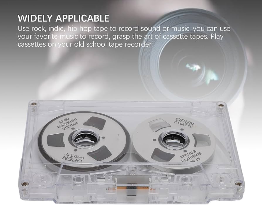 Recording Made Easy] : Preloaded 50-min blank normal bias cassette with transparent box and recording paper. [Great Gift] : Ideal for musicians and bands, perfect for music recording with type i ferric tape. [Visual Design [Usa musicale versatile] Usa per rock, indie, hip hop per registrare la tua musica preferita con l'arte dei nastri a cassetta. [Registrazione portatile] Precaricato 50 minuti di nastro di bias normale vuoto in una scatola trasparente con carta di registrazione inclusa. Cassette Musica Reel To Reel Blank Cassette Tape, 50 Minutes Recording Walkman Cassette [Visual Design Enhancement] Rullo per bobina a cassetta vuota fornisce effetti visivi eccezionali per il tuo lettore a cassetta. Spec: Tipo di articolo: nastro cassetta vuoto per bobina a bobina Materiale: ABS, lega di alluminio Tempo di registrazione: 50 minuti Lista Imballaggio: 1 x Rulto per bobina cassetta vuota 1 x box cassetta 1 x borse di archiviazione come Usa: elimina il prodotto e usalo.