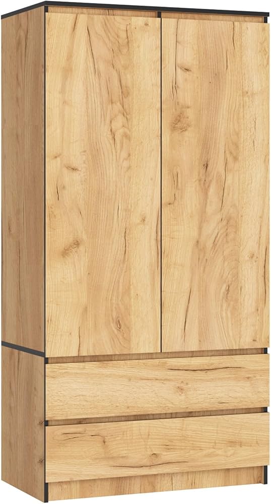AKORD | Armadio STAR S | 60 Cm Due Ante | 2 Cassetti Con Ripiani E Asta Appendiabiti | Mobiletto Cameretta Camera Da Letto | Guardaroba | Pannello In Laminato 16 Mm | Sonoma