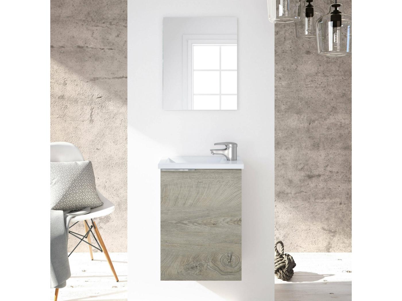 Mobile Sottolavabo, Mobiletto Sospeso Con 1 Cassetto, Armadio Per Bagno Con Specchio Incluso Cm 80x59h45 Colore Rovere E Bianco 53486484