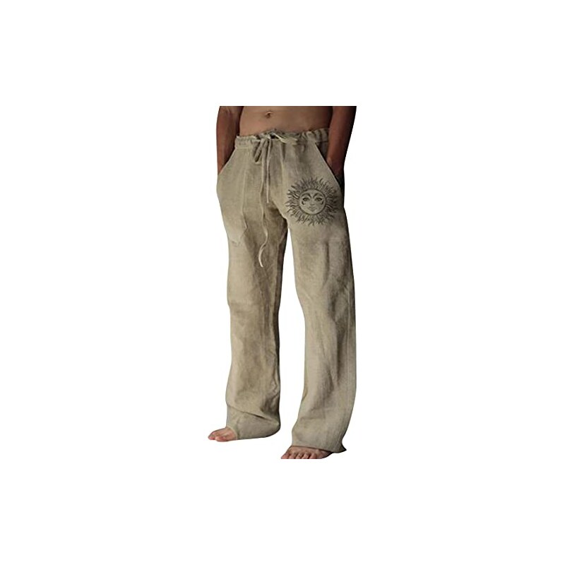 Generico Pantaloni Da Uomo In Lino Larghi Casual Pantaloni Lino Estivo Leggero Comodo Pantalone Con Coulisse Traspirante Loose Fit Pantaloni Baggy Elastici In Vita Vacanza Con Tasche Pantaloni Yoga : Amazon.it: Moda