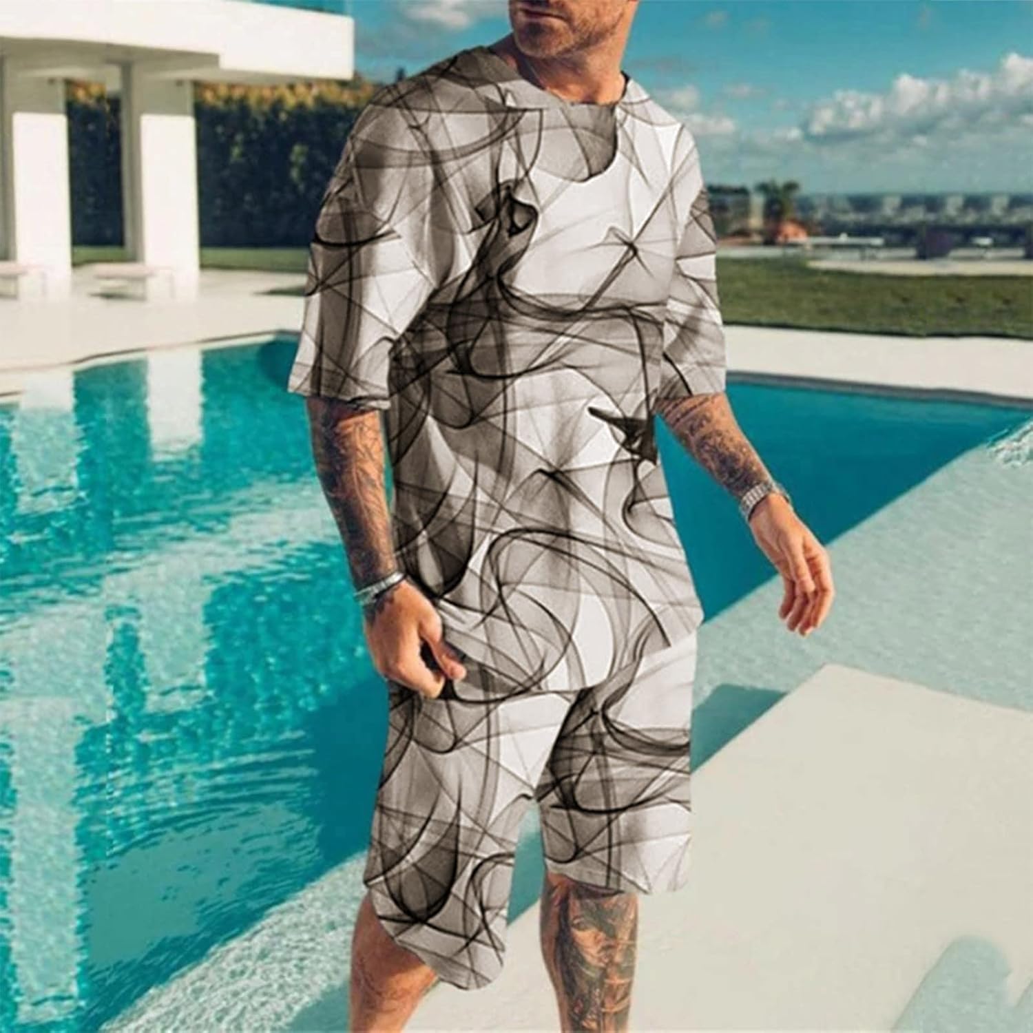 Tuta Da Uomo Estiva Casual Tuta Estivi Casual Leggeri Tute Sportivo Due Pezzi Maglietta Manica Corta E Pantaloncini Completino Palestra Taglie Forti Completo Da Casa Cotone Elastico Allenamento : Amazon.it: Moda
