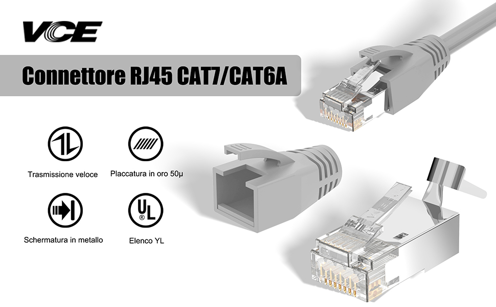 VCELINK Connettori RJ45 Cat7 Cat6A Passanti, Plug RJ45 Schermato Per Cavo Di Rete Cat7 Cat6A Con