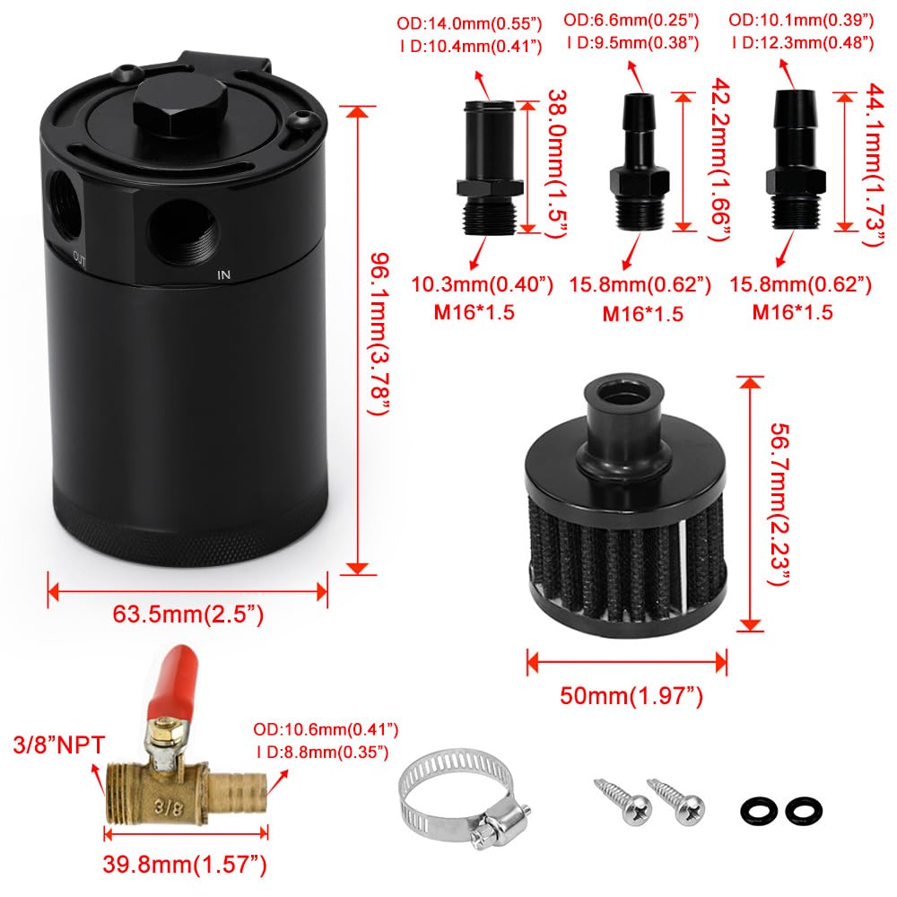 Oil Catch Can Baffled 2 Port Oil Catch Tank Kit With Drain Valve Universal Air Oil Separator Black 2 Not Original B0b7xd1c8g