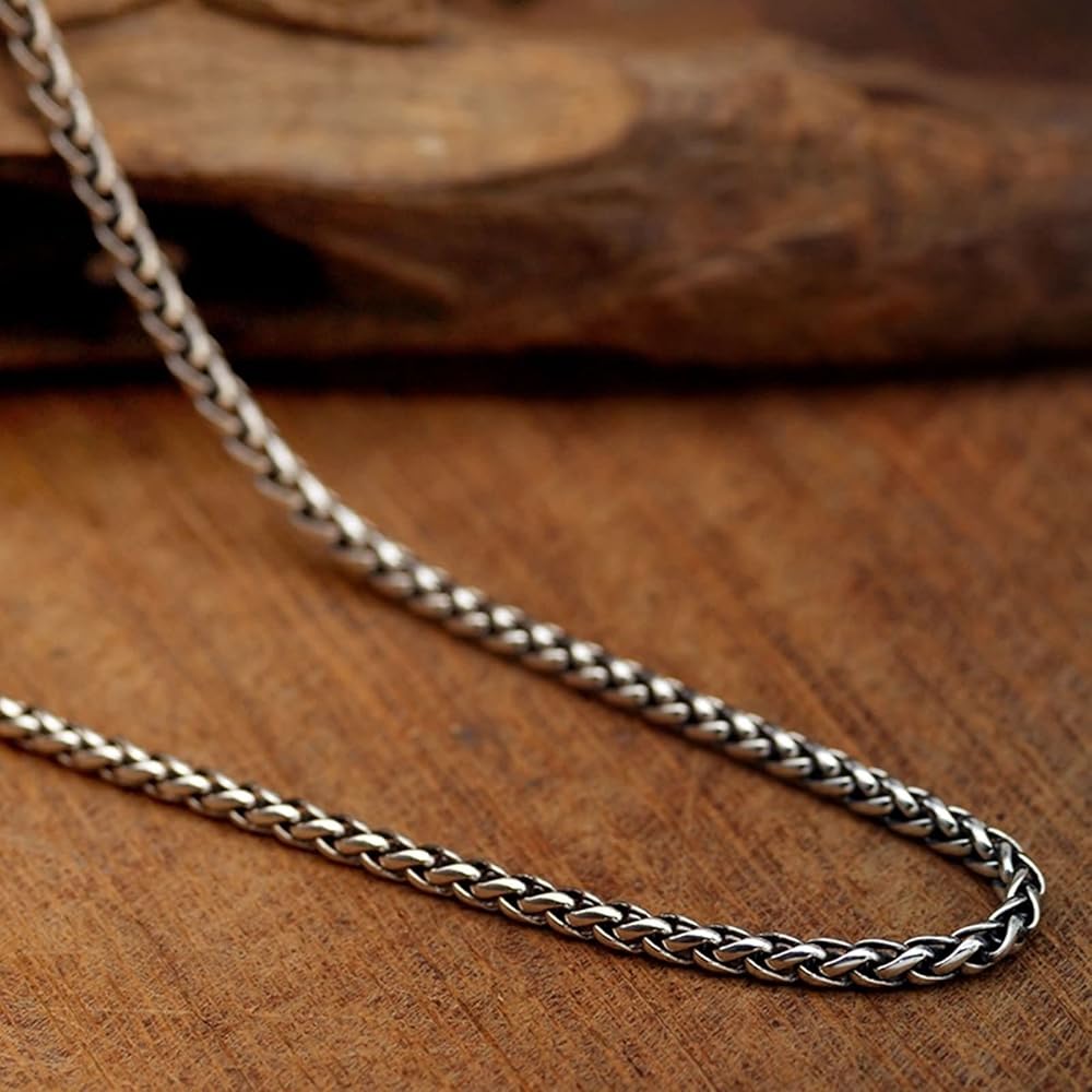 Homxi Collana A Catena Uomo,Collana Lunga Uomo 45 Cm Catenina 3 Mm Catena Con Corda Intrecciata Collana Uomo Argento 925 Hip-Hop Collane Da Uomo Argento