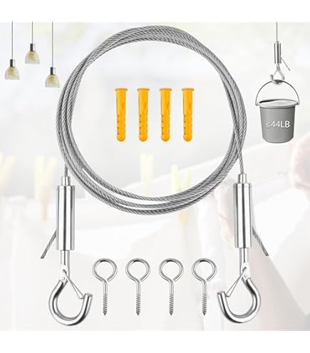 Premi il pulsante nella parte inferiore del gancio e tira semplicemente la corda per regolare la lunghezza degli oggetti che desideri appendere. 4pz Cavo Acciaio Inossidabile è lungo 2 metri e spesso 1,5 mm. acciaio moschettoni cavo cappio filo appendi quadri La Fune Tkxjry 4pz Cavo Acciaio Inossidabile,Fune Metallica Regolabile,Cavo Filo Metallico Fune Acciaio Tiranti include 4 funi metalliche in acciaio inossidabile, le funi metalliche sono ben realizzate e progettate per durare e resistere. Fune Acciaio Inox è pronto all'uso e consente di appendere facilmente gli oggetti senza strumenti di installazione. La lunghezza del filo di acciaio inossidabile può essere regolata manualmente senza attrezzi. Fornisce un forte potere di tenuta e può supportare in sicurezza 20-30 kg, quindi non devi preoccuparti di piegarti o romperti. Catena Corda Fune Acciaio Inox Materiale: acciaio inossidabileFune Metallica Regolabile Quantità: 4 pezziCavo Acciaio Inox Dimensioni: lunghezza 2 metri, spessore 1,5 mm4pz Cavo Acciaio Inossidabile portante: 20-30GKFune Acciaio Inox può essere utilizzato per appendere oggetti da interni ed esterni, perfetti per appendere quadri, lampadari, tende da doccia, specchi, vasi di fiori, casette per gli uccelli, insegne e altre luci fai-da-te, ecc.