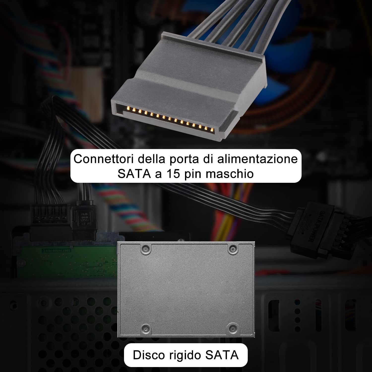 Ci sono connettori di alimentazione SATA che hanno circa 11 cm di distanza su un cavo Se l'interfaccia di alimentazione SATA è insufficiente, convertire il connettore SATA da 15 pin a 5 x 15 pin SATA femmina. Cavo Sata XMSJSIY Adattatore Slimline Da 13 Pin A 22 Pin (13 Pin Male To 22Pin Female) : Amazon.it: Informatica Cavi Di Collegamento Sata Cavo di alimentazione SATA a 5 x SATA SATA a 5 x 15 pin splitter adattatore di prolunga I cavi di alimentazione SATA a 15 pin a 5 x 15 pin sono suddivisi in porte SATA a 5 pin e più unità possono essere facilmente collegate in parallelo a un cavo di alimentazione; Realizzato con filo di marcatura positivo 18AWG, supporta l'alimentazione ad alta corrente. SATA fino a 5 x 15 poli SATA cavo di alimentazione. Il cavo di alimentazione SATA fino a 5 x SATA adotta una guaina flessibile in PVC ed è composto da nucleo in rame stagnato da 18 AWG, che ha un buon isolamento, ritardante di fiamma e conducibilità e supporta l'alimentazione ad alta corrente cavo di alimentazione sata 15 pin plug 2x alimentazione sata 15 pin 15 cm Cavo SATA a 15 pin a 5 x 15 pin, alimentatore di rete, spina SATA per PC server fai da te Il corpo del cavo è appiattito e progettato con un corpo piatto del cavo, che assicura che i fili siano puliti e non dispersi, rendendolo comodo per il cablaggio e la perforazione. Il cavo del convertitore di alimentazione SATA si collega all'alimentazione del computer tramite un cavo e offre cinque porte seriali SATA per superare la limitazione della quantità di dispositivi SATA e aggiornare in modo sicuro ed efficace la capacità di archiviazione del computer Il cavo di alimentazione da SATA a SATA adotta un design parallelo con fili ordinati; non copre la rete, i cavi non sono dispersi, i fili sono ordinati, i connettori sono chiari e prominenti e il cavo di alimentazione è conveniente per il cablaggio e la perforazione