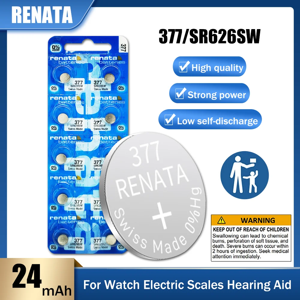 Renata 377 Button Cell Batteries - SR626SW AG4 - Box Of 100 - Watch Batteries - Watch Batteries