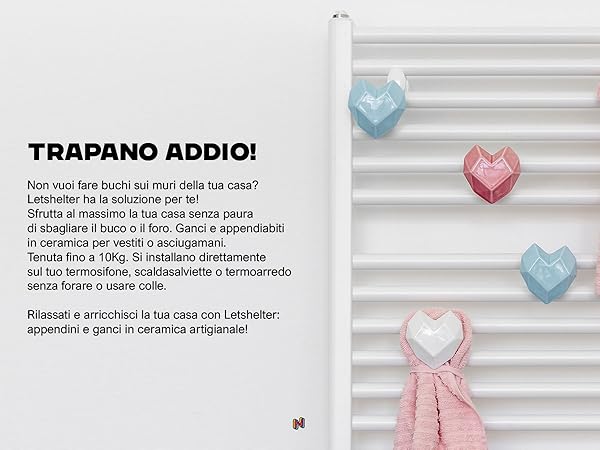 i dettagli fanno la perfezione i dettagli fanno la perfezione Scaldasalviette o termoarredo: perfetto per tubi singoli o doppi, anche per elementi piatti, quadrati e rotondi. Si adatta perfettamente: non compromette il funzionamento del radiatore scaldasalviette o termoarredo e scaldano l'asciugamano. Appendino Adesivo Per Termosifone Letshelter | Appendino In Ceramica Per Scaldasalviette E Termoarredo A Con La Mappa Di Venezia Realizzato Artigianalmente In Italia - Si Installa Direttamente Al Radiatore : Amazon.it: Fai Da Te Termoarredo Bagno Ottima qualità: lo sogniamo, disegniamo e produciamo in Italia con ceramiche naturali, dall'estetica impeccabile. Molto pratico: perfetto per valorizzare gli spazi della tua casa o della tua anima, senza forare le piastrelle o usare colle.