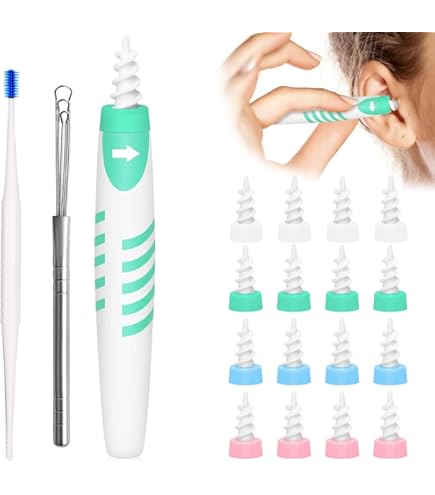 Cotton Fioc Orecchie Kit Rimozione Cerume: 16 Pulitori A Spirale Precisione Punte Prodotti Per Rimozione Cerume Materiale: silicone e plastica e acciaio inossidabile di alta qualità, morbido. KIT DI STRUMENTI PER LA PULIZIA DELLE ORECCHIE: la pulizia regolare del cerume è necessaria per mantenere un buon udito. Questi strumenti per la rimozione del cerume sono facili da trasportare e sono una delle buone scelte delle necessità quotidiane per v Strumento di rimozione del cerume: 1 strumento di rimozione del cerume in silicone con 16 punte lavabili in silicone morbido, 1 rimozione del cerume in acciaio inossidabile, 1 spazzola per la rimozione del cerume a spirale. Facile da usare: design a spirale rotante a 360 gradi, girevole in grado di rimuovere le aderenze nel canale uditivo a 360 gradi, il cerume sulla parete interna massaggia il canale uditivo allo stesso tempo. Facile da trasportare: Si possono portare con sé ovunque, in viaggio, al lavoro o a casa quando le orecchie si sentono a disagio. Facile da pulire: sciacquare accuratamente il pulitore auricolare con acqua e sapone prima e dopo l'uso. Materiale: è realizzato in silicone, plastica e acciaio inossidabile di alta qualità, abbastanza morbido da non danneggiare i timpani durante la pulizia del cerume.