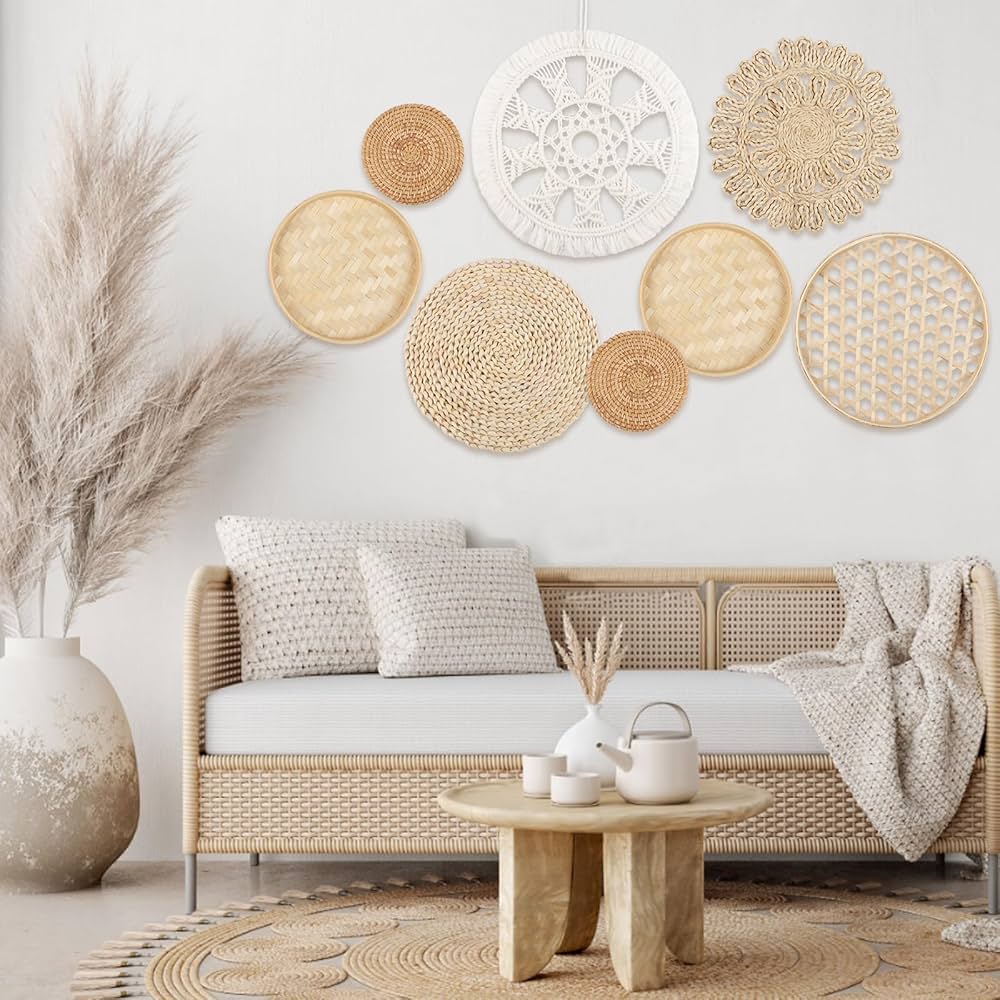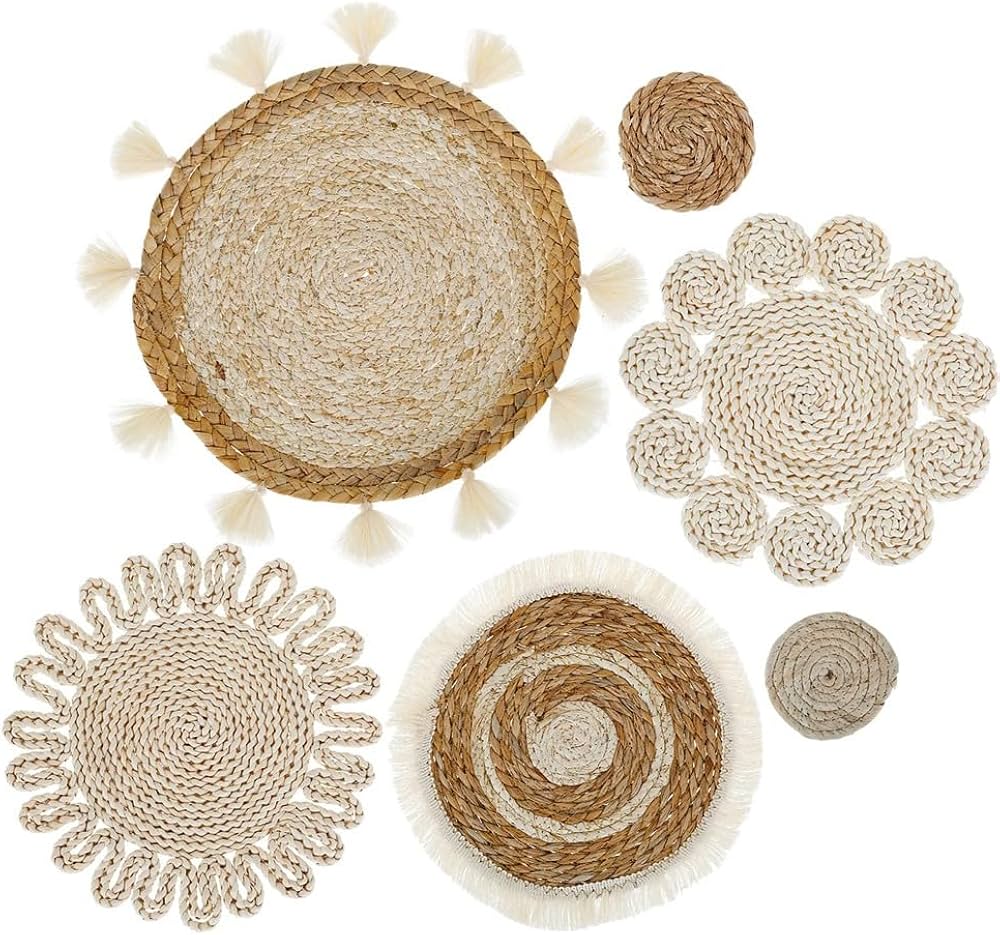 Legno Decorativo Parete 6 Pezzi Di Decorazioni Per Cestini Da Parete Boho, Cestini Piatti Intrecciati Appesi, Cestini Rotondi In Vimini Da Parete, Decorazioni Da Parete In Rattan, Cestini Da Parete Rustici Fatti A Mano(#1 Decorazioni Da Parete Moderne Descrizione: Aggiungi un tocco moderno e rustico al tuo arredamento con questo cesto muro intrecciato..Artigianato a mano con materiali di Olyetilene, questo elegante cestino boho è il modo perfetto per ravvivare qualsiasi spazio..Questo cesto muro è perfetto per aggiungere un tocco di fattoria a casa tua..Il suo design tessuto porterà sicuramente un tocco personalizzato a qualsiasi muro..Appendilo nel tuo soggiorno, camera da letto, corridoio o in qualsiasi altro posto per mostrare il tuo stile..Questo cestino fa anche un ottimo regalo per chiunque ami l'arredamento moderno della fattoria.. FAINS:.. decoro del cesto muro.. -Color: come mostrato.. -materiale: polietilene.. -Mize: stile 1, diametro 35 cm, lo spessore è di circa 7 cm.. NOTA: Misurazione manuale, si prega di consentire lievi errori sulla dimensione.. I colori possono esistere una leggera differenza a causa di schermi diversi.. pacchetto incluso 1 * Basket muro intrecciato Grtheenumb Cesto Muro Intrecciato Chic Chic Boho cestini Artigianali a Mano Moderna e Decorazione di Decorazioni da Parete Rustica 1, Diametro 35 cm, Arredamento da Parete di Vimini Crea il tuo stile mescolando e abbinando diversi cestini per creare un look rustico, bohémien, contemporaneo, minimalista o di fattoria. Usa come vassoio di rattan e come cesto di frutta per cucina o sala da pranzo, ecc. Trasforma istantaneamente l'arredamento: trasforma una parete nuda in un drammatico punto focale con i bellissimi cestini intrecciati, puoi facilmente abbellire tua casa o l'appartamento senza spendere una fortuna in opere d'arte. Usa multipli per integrare qualsiasi arredamento: indipendentemente dall'aspetto che preferisci, i cestini si adatteranno direttamente;. Basket Chic Boho: questo elegante cesto boho è realizzato con materiali in polietilene e presenta un design intrecciato unico con trame ricche, tonalità terrose e dettagli fatti a mano accattivanti che porteranno calore e personalità in qualsiasi spazio.