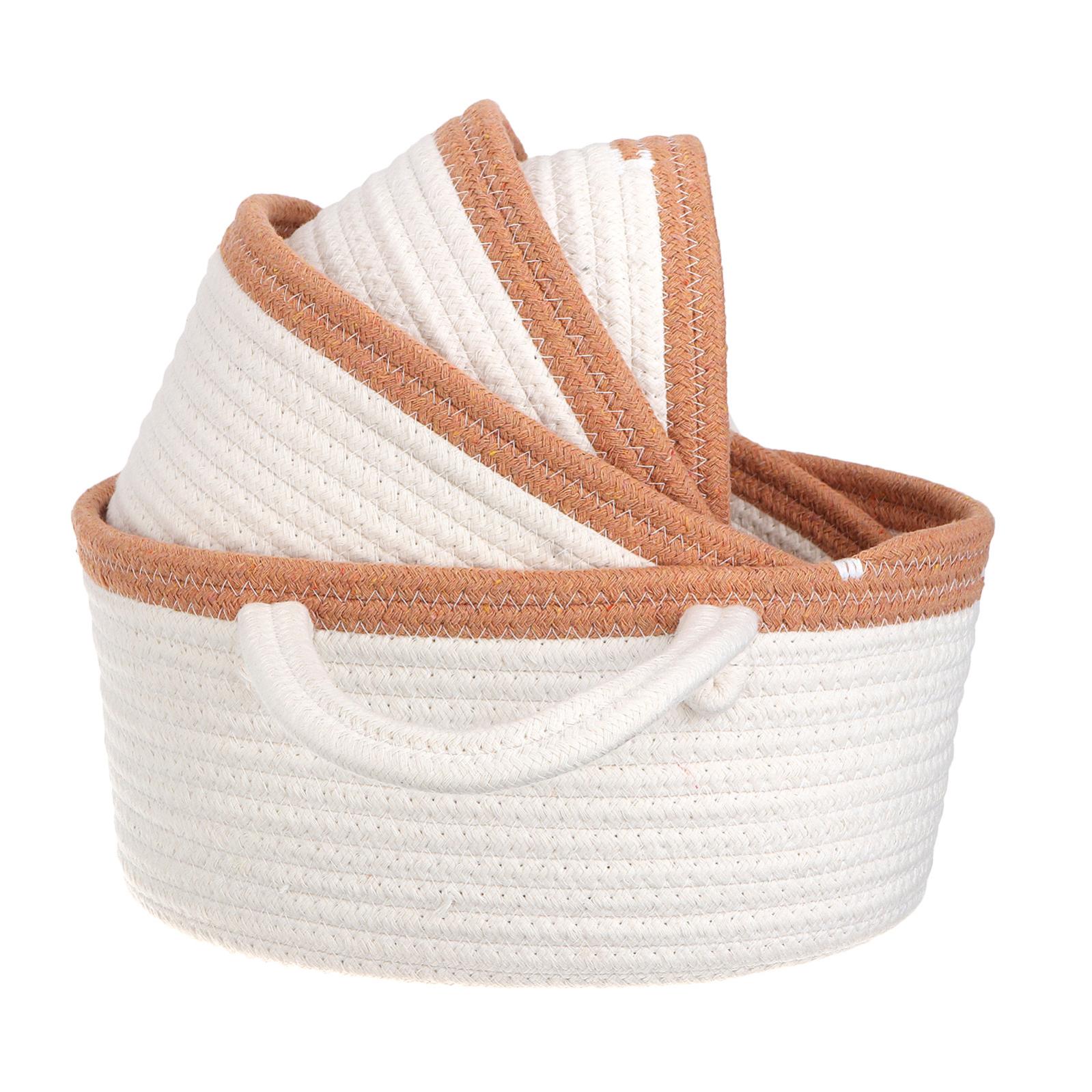 Set Di 4 Cestini Portaoggetti Intrecciato In Giacinto D'acqua E Cotone,cestino Portaoggetti Bagno,Impilabile Organizer Fasciatoio,Decorazione Cestini Stoccaggio Per Cameretta Salotto Ufficio Bagn