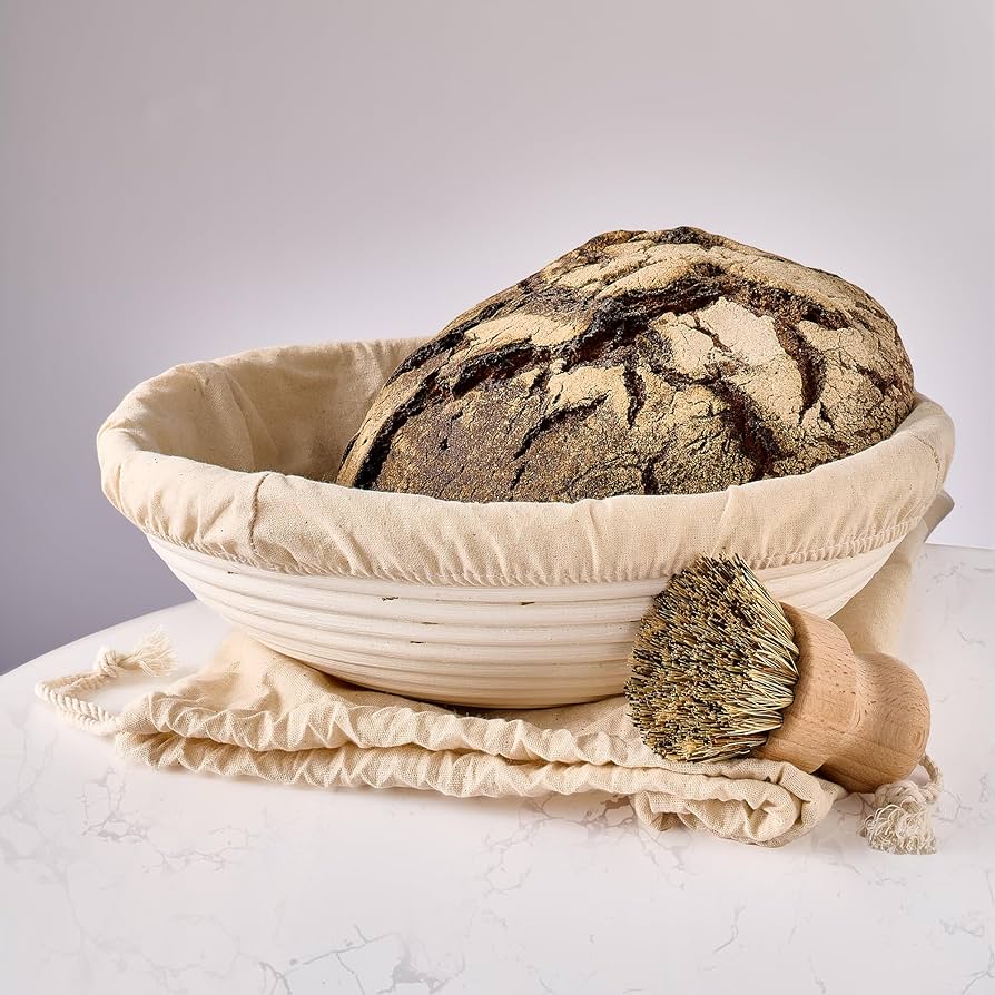 Nota: non posizionare su una fonte di calore caldo o in un ambiente buio e umido È inoltre possibile utilizzare regolarmente un panno umido per ottenere un risultato più perfetto e dovrebbe essere asciugato accuratamente dopo la pulizia. Contenuto della confezione: riceverete un cestino rotondo (20 x 8 cm) + un cestino ovale (28 x 14 x 8 cm) + 2 inserti in lino + pennello per olio in silicone + raschietto in plastica semicircolare. Forma perfetta e lascia fermentare il pane: il nostro cestino per la lievitazione del pane è antiaderente e traspirante. Ideale per cuocere a casa! Cestini Per Lievitazione Pane Cestino Ovale Per Lievitare Pani Gesentur Cestino Lievitazione Pane Ovali 3 Pezzi (22 | 25 | 28 Cm) In Rattan Naturale, Con Rivestimento In Lino, Raschietto, Borsa Il Pane In Lino Cestino Per Lievitazione Pane Cestini Per Lievitare Il Pane Facile da pulire: per i cestini di lievitazione, di solito utilizzare una spazzola per rimuovere la farina rimanente sulla superficie e pulirla leggermente per una cura ottimale. Aiuta a mantenere la forma del pane, consentendo una corretta circolazione dell'aria, in modo che l'impasto si alzi uniformemente e formi una bella crosta. Due forme possono rendere il processo di cottura del pane più flessibile Quindi puoi cuocere pane delizioso e sano Assorbe l'umidità in eccesso: i cestini in rattan per pane hanno proprietà igroscopiche naturali che aiutano a rimuovere l'umidità in eccesso dall'impasto durante il processo di fermentazione, impediscono che l'impasto diventi troppo umido e appiccicoso e lo lasciano lievitare uniformemente, facilitando il taglio e rendendo la crosta più croccante.