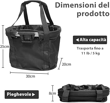 Cestini Per Bici Anteriori COFIT Cestino Per Bicicletta Staccabile, Multifunzionale, Pieghevole, Cestino Anteriore Per Animali Domestici, Shopping, Pendolari, Campeggio E Attività All'aperto, Con Sacchetti, Blu Bicicletta Pieghevole 🚲【Cestello Funzionale A Sgancio Rapido】Il telaio della bicicletta è montato tramite un attacco rapido al manubrio e può essere facilmente rimosso o montato sulla bicicletta con la semplice pressione di un pulsante. auvstar Cestino Bicicletta Anteriore,Cestino Per Bici Staccabile,Cestino Della Bicicletta Pieghevole,Cestino Multiuso Per Biciclette Per Animali Domestici,Shopping,Pendolari,Campeggio E Outdoor Quando si fa la spesa, è possibile rimuovere il cestino e utilizzarlo per trasportare la spesa o altri oggetti. 🚲【Per L'uso Quotidiano】Il cestino anteriore è facile da rimuovere ed è abbastanza versatile da poter essere utilizzato come trasportino per animali domestici, borsa per la spesa, contenitore per il campeggio e per il pranzo all'aperto. 🚲【Servizio Di Assistenza Più Cordiale】Siamo impegnati a servire ogni cliente, per portare ai clienti i migliori prodotti, se avete domande dopo l'acquisto è possibile inviare una e-mail, saremo la soluzione perfetta per il vostro problema! Adatto al diametro del manubrio 22-32MM, si prega di controllare attentamente le dimensioni prima dell'acquisto. 🚲【Qualità Eccellente】Il cestino anteriore è realizzato in tessuto Oxford impermeabile e telaio in alluminio antiruggine, la maniglia in alluminio è dotata di morbidi cuscinetti in spugna antistrappo per proteggere le mani quando si trasportano carichi pesanti, tessuto in tessuto Oxford resistente all'usura con rivestimento impermeabile in un unico pezzo e tasche integrate con cerniera per chiavi, telefoni cellulari e altri piccoli oggetti.