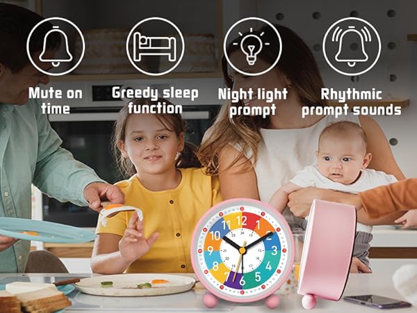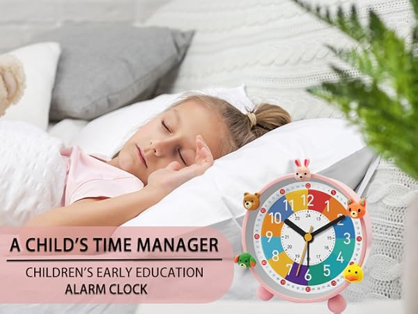PIXESTT Sveglia Bambini, Adatta Ai Bambini Che Iniziano Ad Andare A Scuola, Nessun Ticchettio, Funzione Luce Notturna E Funzione Snooze, Con 5 Adorabili Decorazioni Per Sveglia Comodino
