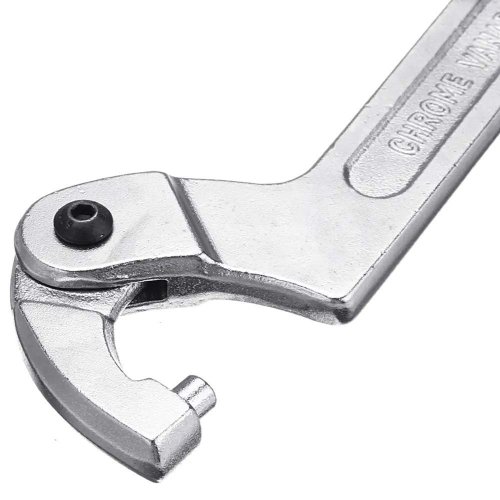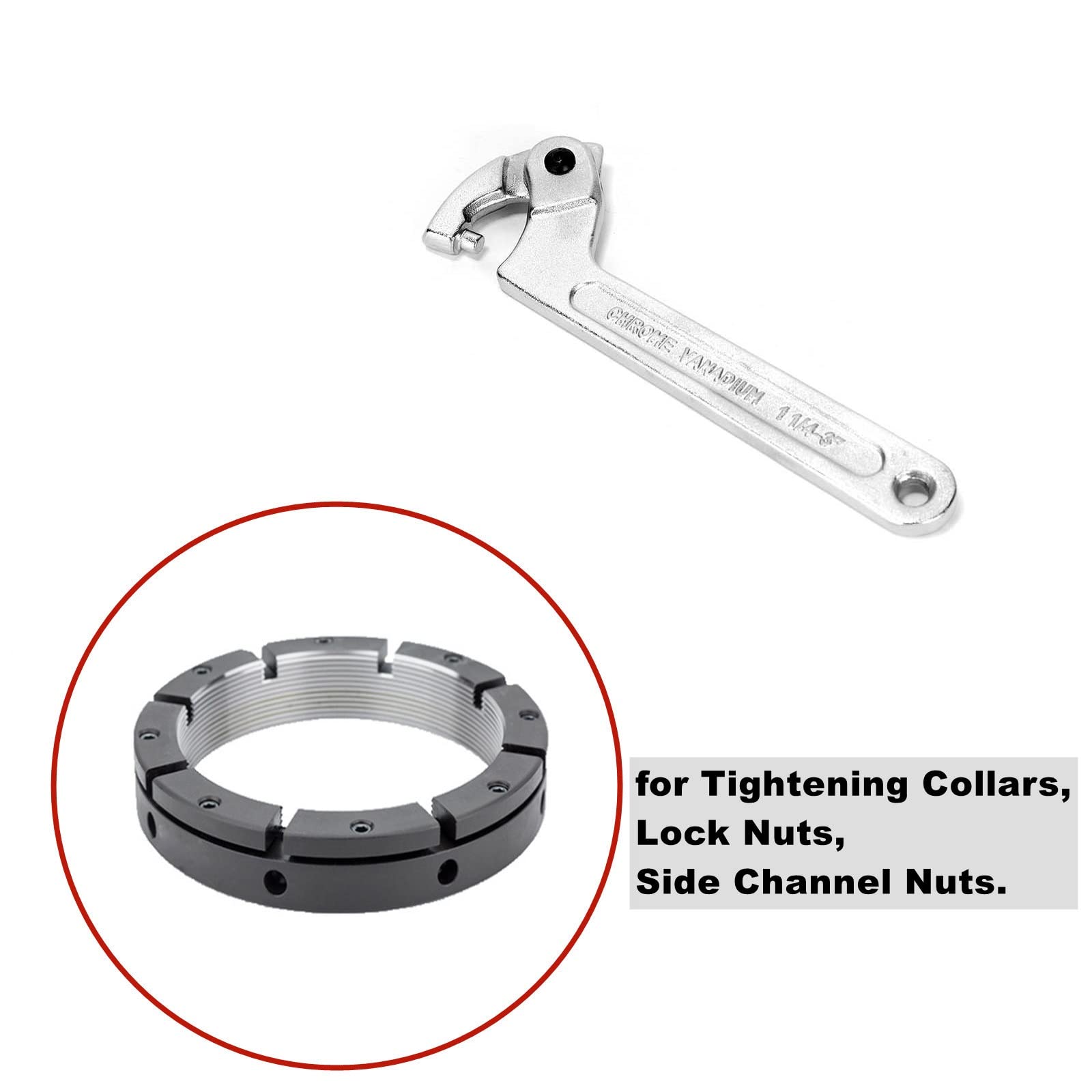Sourcing Map Chiave A Gancio A C, 12-14 Mm, Con Dado A C Per Moto Specifiche tecniche: Materiale: cromo vanadio. icona arancio bottone spinga perno perfezione rotondo arrow Colore: tono argento Lunghezza manico: 19 cm. Testa del gancio regolabile: la chiave è progettata con una testa rotonda mobile e una chiave a gancio, che consente di regolare le dimensioni e un facile serraggio o allentamento di dadi di bloccaggio e cuscinetti. Applicazione: questa chiave a C regolabile è ideale per l'uso in varie impostazioni, tra cui officine industriali, officine di riparazione meccanica e progetti fai da te per bloccare e allentare dadi e cuscinetti, macchine utensili e utensili meccanici. Dimensioni: questa chiave a C è regolabile e adatta per dadi di bloccaggio nell'intervallo di 51-121 mm e la lunghezza del manico è di 19 cm, la larghezza massima di apertura è di 90 mm, la lunghezza totale è di 29 cm, fornendo versatilità per varie macchine utensili e attrezzature meccaniche. Larghezza massima di apertura: 90 mm. Lunghezza Totale: 29cm/11.4 pollici