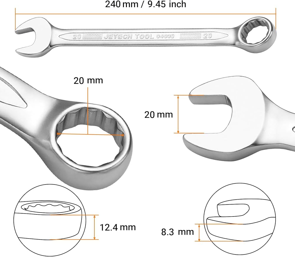 Compra Jetech 20mm Chiave combinata,Durevole chiave in acciaio Cr-V ad alta resistenza con finitura sabbiata a prezzi vantaggiosi su Manico antiscivolo – aree di presa sul manico per evitare scivolamenti durante il lavoro. L'estremità aperta a 25 gradi permette alla chiave di girare gli oggetti da una varietà di angolazioni per una migliore efficienza in condizioni di lavoro crampato. Chiave A Cricchetto Jetech 21mm Chiave Combinata,Durevole Chiave In Acciaio Cr-V Ad Alta Resistenza Con Finitura Sabbiata Chiavi A Cricchetto Terminale a 12 punti e estremità aperta a 15 gradi: si adatta saldamente a teste di fissaggio a 12 lati. Struttura di qualità: realizzato in acciaio al cromo vanadio trattato termicamente, per una maggiore resistenza e durata.