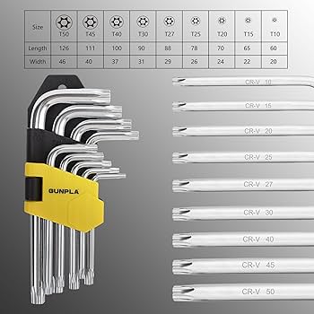 Gunpla Set Chiavi Torx 9 Pezzi T10-T50 Con Foro, Chiavi Esagonali A Brugola Braccio Corte, Forma L, Ideale Per Gli Appassionati E Professionisti Del Fai-da-te : Amazon.it: Fai Da Te