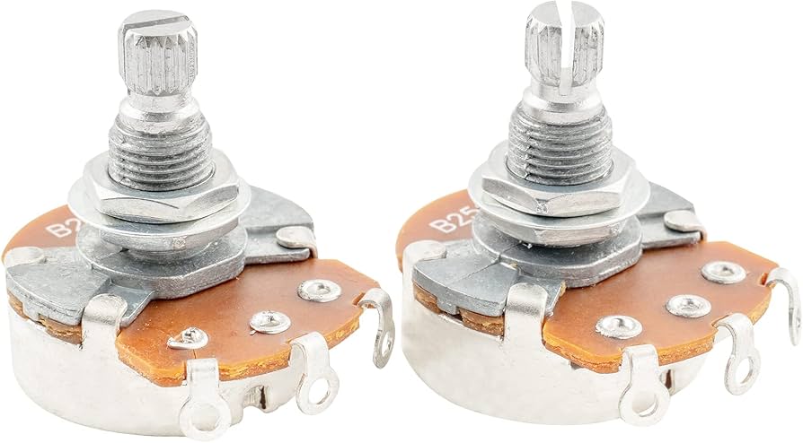 FLEOR 2PCS Potenziometro Per Interruttore A Pressione Per Chitarra B250K Potenziometro Lineare Conico In Rame Lungo Albero Diviso Per Parti Di Basso Per Chitarra Elettrica