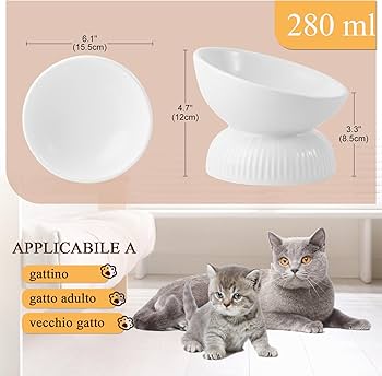 【Facile Da Pulire e Conservare】Le Superfici Ceramiche Lisce Sono Particolarmente Facili Da Pulire. 【Materiale】Questo Ciotola Cibo Gatto Ceramica è Realizzato Con Qualità Alimentare Ed è Ideale Per Cibo e Bevande. Ciotola per cibo per gatti rialzata personalizzata in ceramica verde, ciotola per animali domestici rialzata e inclinata in ceramica , ideale per la colonna vertebrale Piatto per gatti , Piatto per cani di piccola taglia. Rilievo della colonna vertebrale Ciotola Gatto Ciotola Per Cani Ciotola Per Gatti – Ciotole Rialzate Per Gatti Cibo Gatti Con Lavastoviglie Per Gatti, Forno a Microonde e Forno, Le Ciotole Per Gatti Sono Facilmente Impilate Per Risparmiare Spazio In Lavastoviglie. Questi Piatti Possono Anche Essere Utilizzati Come Piatti Di Caramelle, Piatti Per Insalate e Ciotole Di Frutta. Il Design Piatto e Ampio Dell'apertura Della Ciotola Aiuta i Gatti e Assicura Che La Casa Abbia Un'Arredamento Attraente. Ideale Anche Per Altri Animali Domestici, Come Cuccioli, Conigli e Hamster. 【Mangiare Comodamente】Il Design Piatto Del Gatto Consente di Usare Facilmente Il Mangimo Senza Disturbare La Barba del Gatto.