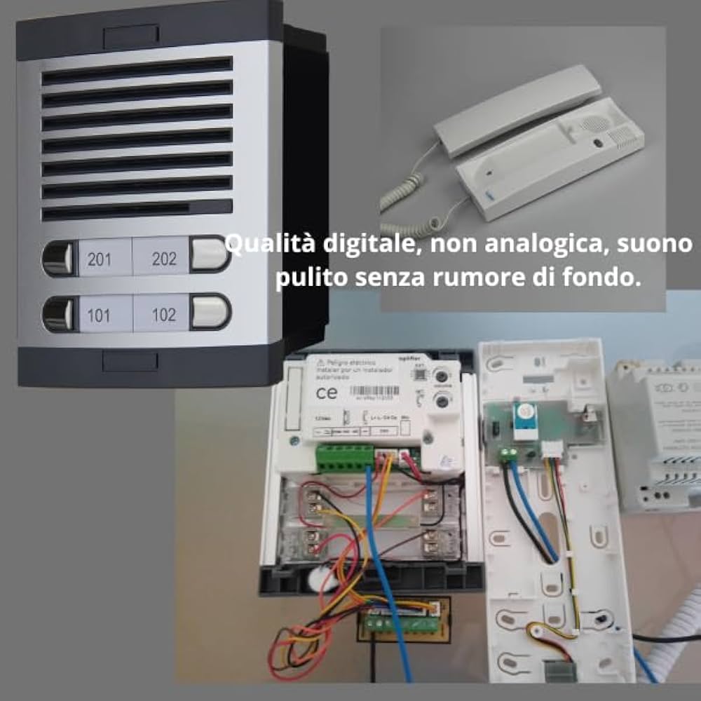 Vi aiutiamo con l'installazione se richiede assistenza. ⚡ Sicurezza e Comfort – Controllo dell’accesso facile ed efficace per la tua comunità. Qualità Premium: Una soluzione che si adatta alle nuove tendenze e stili di vita. 🏠 Ideale per Condomini – Perfetto per edifici con 6 abitazioni, garantisce comunicazione sicura. kit Bifafamiliare 2 ingressi Portiere elettronico con piastra Cityline e telefono. 🔊 Audio Chiaro e Affidabile – Sistema di alta qualità per conversazioni nitide. Citofono 2 Fili Kit Citofonico - 2 Fili, Installazione Facile, Per Condomini Bticino Terraneo Descrizione prodotto Citofono automatico a 2 fili, per abitazioni ed edifici. 📦 Kit Completo – Include targa esterna, scatola, alimentatore DIN 12Vac/1A e 6 cornette. Frontale resistente: Predisposto a resistere alle intemperie Pulsanti stagni: shasta 100.000 pulsazioni. ✅ Installazione Facile – Kit citofonico a 2 fili, semplice da montare senza lavori complessi. Illuminazione a LED: Porta carte a basso consumo che combinano funzionalità e stile. Scarica e imposta i pavimenti e le lettere delle tue case sul nostro sito web. Telefono: Innovazione per la casa moderna Progettato in ABS ad alto impatto con protezione UV, questo telefono combina funzionalità e design contemporaneo.