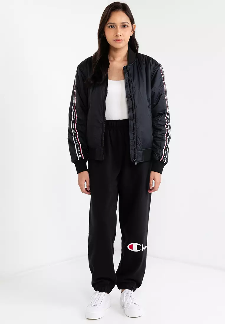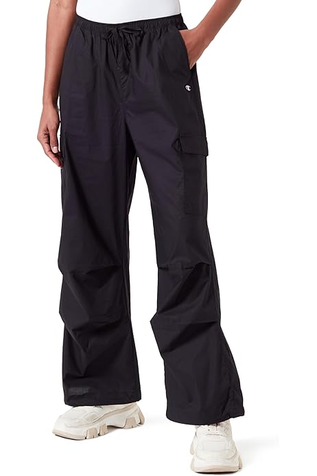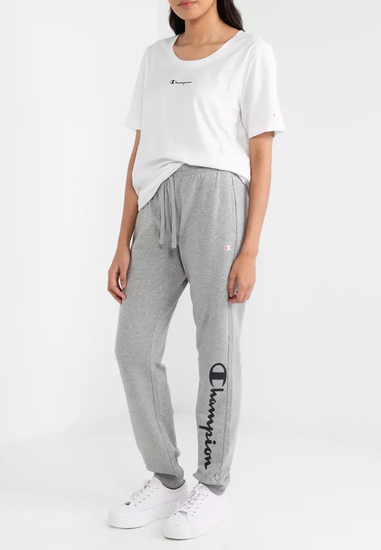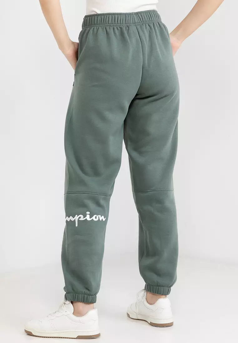 Buoni pantaloni della tuta con vistoso logo Champions sulla gamba sinistra. Adatto ad allenamenti o camminate in primavera/autunno Tuta Donna Champion Champion Legacy American Classics Pocket Logo High Waist Rib Cuff Pantaloni Champion Donna Tessuto light-stretch fleece felpato (240gr)