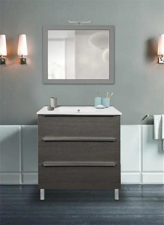 Mobile bagno sospeso grigio antracite 82 cm con lavabo in ceramica e specchio rotondo. Scegli ! arredi di qualità per il tuo bagno e consegna in 72 ore. ... Lo specchio ha un diamero di 60 cm con bordo filo lucido e dotata di applique led. mobilett Armadietto, anta ammortizzata (re/li), 1 ripiano, 35 x 75 x 32 cm (L x A x P) 35/75/32 cm, anta ammortizzata (re/li), 1 ripiano, 35/75/22 cm (L x A x P) Mobile sottolavello, 2 cassetti Softclose, 80 x 59 x 46 cm, in ceramica con foro rubinetto e troppopieno, 81/17/46 cm (larghezza x altezza x profondità) (interno 41/12/26 cm) Mobiletto Bagno Con Specchio Bagno Completo Con Mobile 105 Cm E Colonna Antracite Lucido, Specchio Led, Rubinetti E Sanitari Arredo Bagno Completo Ante ammortizzate e cassetti Softclose, bacino in ceramica: nero satinato Frontali in MDF con rivestimento in antracite satinato, corpo: rovere Wotane.