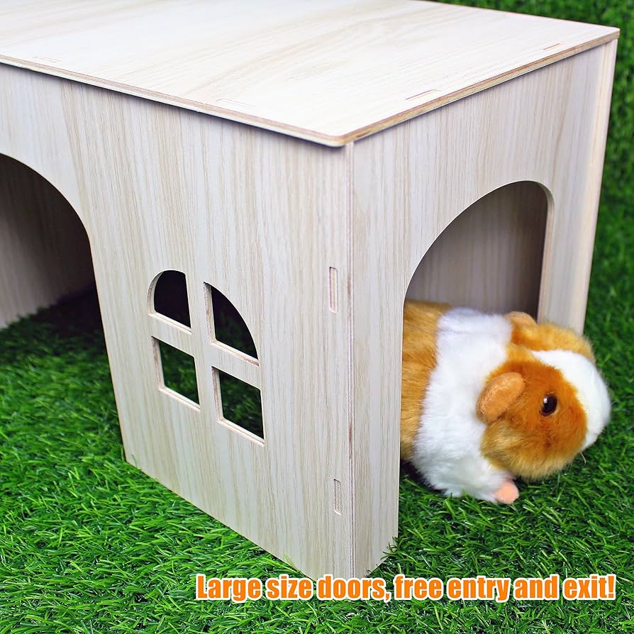 YankMooM Casetta In Legno Per Porcellini D'India, 40 X 24 X 26 Cm, Grande Rifugio In Legno Per Criceti, Conigli, Conigli, Piccoli Animali Domestici, Con Finestre, Per Porcellini D'India, Conigli