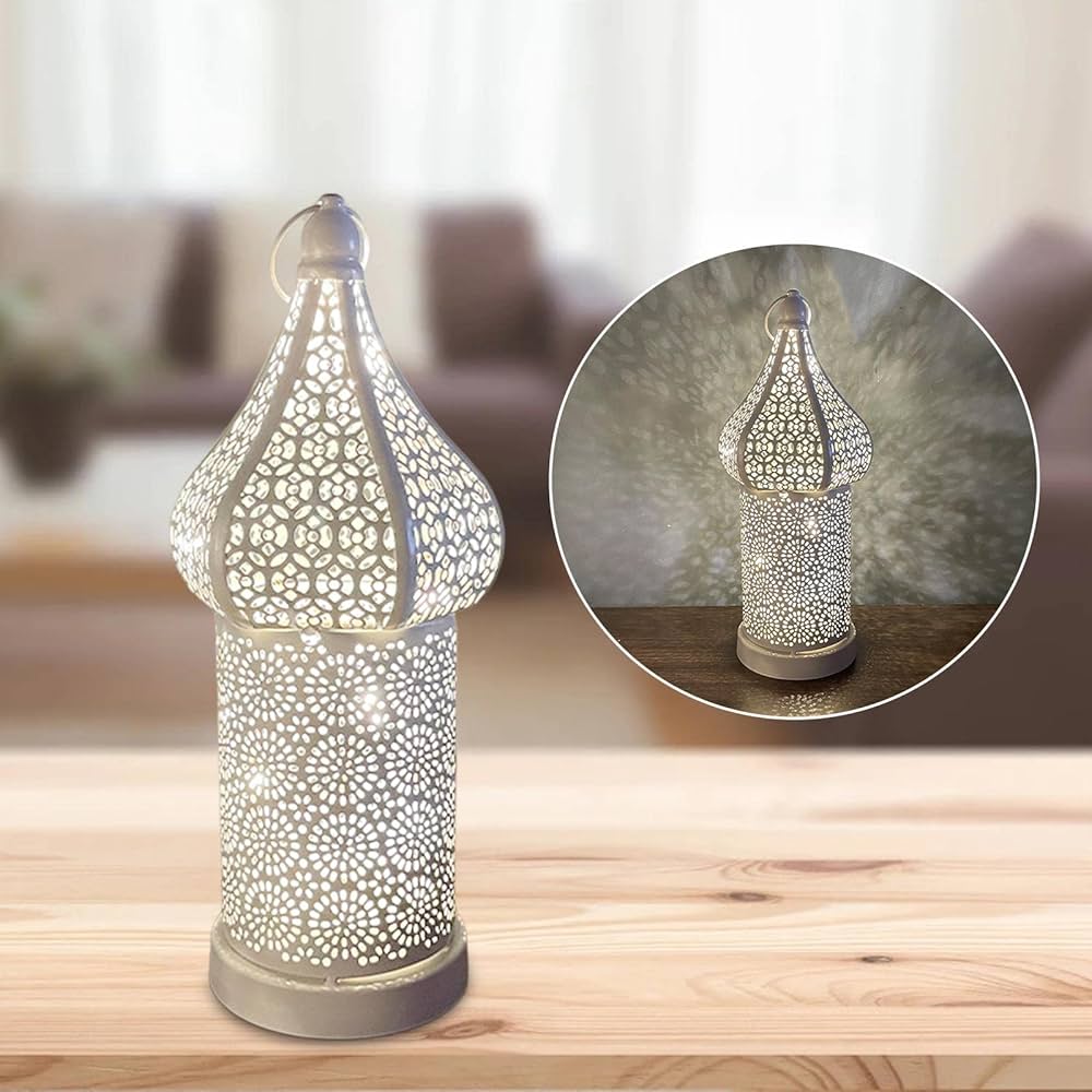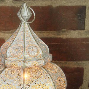 Set Di 2 Lanterne Orientali In Metallo Maha Bianco, 28 Cm, Lanterna Orientale Da Giardino Marocchina | Lanterna In Metallo Marocchina Per Esterni Come Lanterna Da Giardino O Per Interni Come Lanterna