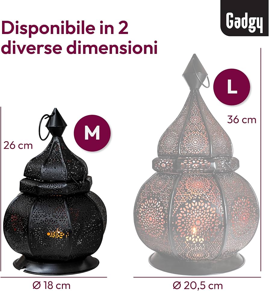 Come portacandela antivento, portacandele o portacandele, crea suggestivi centrotavola su credenze, comò, tavolini, comodini, mensole da parete e console. Sia sul tavolo da pranzo come romantica luce di candela, in camera da letto o in soggiorno come luce notturna, in giardino o in terrazza come luce da giardino, sia mediterraneo, orientale o moderno: con i nostri portacandele marocchino potrete viaggiare in Oriente e lasciarvi incantare con ombre filigranate, un elemento di attrazione che non può mancare nel vostro salotto. Questa lanterna orientale è stata realizzata a mano e crea giochi d'ombra in filigrana sulla parete e sul pavimento. La punta può essere aperta per posizionare la lampadina come ad esempio un lumino, una piccola candela o una catena di luci. Compra Casa Moro | Lanterna Oriental in metallo Alima bianco 30cm | Lanterna da giardino marocchina | Bellissima Lanterna da tavolo per la celebrazione del matrimonio decorazione regalo di Natale | LN2050 Oro Bianco Estetico Room Decor La lanterna è ideale come lanterna da tavolo o da tavolo e si adatta a diversi stili. Flessibile: come romantica illuminazione di Natale, come lanterna di Natale o lanterna di Natale, come lanterna da giardino, lanterna per serate rilassanti in terrazza e balcone, come lanterna da tavolo per serate romantiche in secondo luogo, con amici e familiari. The Marocchino Set Di 2 Lanterne Orientali In Metallo Maha Bianco, 28 Cm, Lanterna Orientale Da Giardino Marocchina | Lanterna In Metallo Marocchina Per Esterni Come Lanterna Da Giardino O Per Interni Come Lanterna Lanterna Marocchina Lanterna decorativa shabby chic Lanterna antivento con finitura oro bianco e look shabby chic, adatta all'eleganza scandinava, al fascino marittimo e allo stile country Colore: bianco - oro. È adatto per candeline, candele a colonna, candele a bastoncino e catene luminose. Il portacandele è laccato dall'interno ed esterno in bianco. Lanterna antivento in metallo bianco oro – Shabby Chic decorazione per il vostro concetto desiderato - Il lume di candela è più di una semplice fiamma: crea un magico gioco di luci e ombre e dona calore estetico a qualsiasi stanza. In stile rustico, diventa un punto culminante, in stile Skandi crea un armonioso arredamento estetico e conferisce allo stile marittimo un tocco estetico. La versatile lanterna antivento con finitura oro bianco e stile shabby chic dona un tocco accogliente, sia come decorazione in soggiorno, come lanterna da tavolo o sul davanzale della finestra.