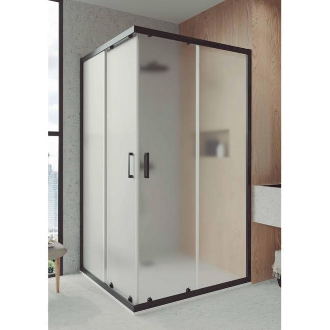 Box Doccia 80x120 Cm Scorrevole Con Vetro Serigrafato E Profilo Nero Opaco 200h Skin