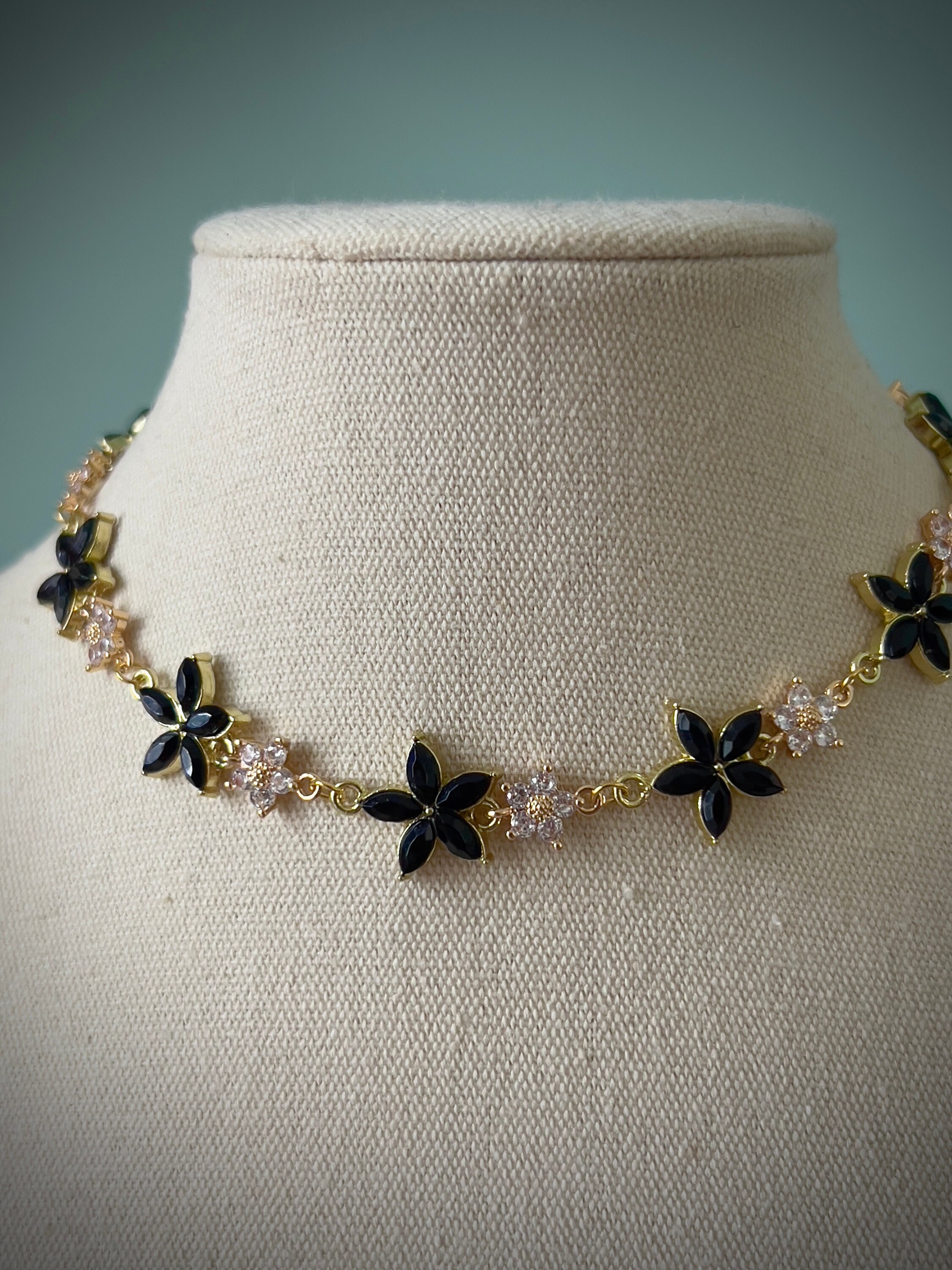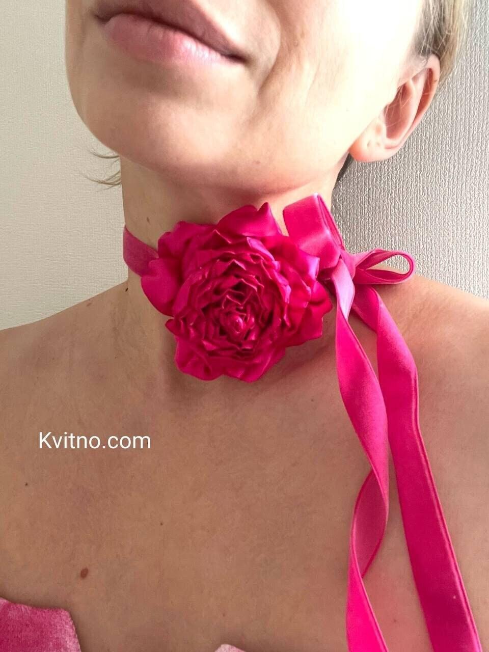HAOXYO 4 Pezzi Collana Girocollo Con Fiori Per Donne E Ragazze,Elegante Collana Con Rosa,Personalità Choker Nero Con Spalline Lunghe Per Matrimoni,Feste Di Compleanno (Nero,Rosso,Blu,Bianco