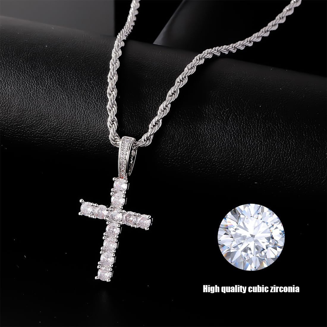 Collana Uomo, Croce Collane Girocollo Uomo Acciaio Inox Con Zirconi, Catena Con Pendente Croce Catenina