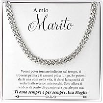 La collana ha superato i test di sicurezza, nessun danno per la salute. Con infinito Amore Un catalogo di prodotti unici con tantissime dediche emozionanti, per le mamme, le nonne, le figlie, le nipoti, le zie, per la festa di laurea, per la prima comunione e per tanto altro ancora. Gioielli uomo di qualità premium. E poiché la catena è regolabile, questa collana sarà spettacolare su tutti coloro che la indosseranno. Adatto per la festa di compleanno mariti o fidanzati anniversarii, onomastico, Valentin's Day, regali di nozze, regali di Natale e regali di anniversario, padrini, nonni, fratelli, amici, cognati. Stile ed Eleganza Ti offriamo un modo per esprimerti ed essere più tu nella vita di tutti i giorni o quando si vuole fare un regalo a qualcuno di speciale per un evento speciale, poichè si abbinano perfettamente per ogni tipo di abito o look. ♥ Collana Marito ♥ Collana uomo regolabile da 45.7 cm- 56 cm - Acciao Inossidabile lucido - Larghezza catena 5mm - Peso: 28,5 grammi - COFANETTO CON DEDICA INCLUSO - É un idea regalo uomo utile per i mariti o fidanzati. Questa collana rappresenta un legame eterno, un gioiello classico e sempre di tendenza, simbolo di amore. Materiali di qualità Splendidamente realizzati con finitura in Oro Bianco 14k, Oro Rosa 14k, Oro Bianco 14k o Argento Rodiato e con Acciaio Inox Lucidato di altissima qualità con Pietra Zirconia, tutti i prodotti hanno superato i test di sicurezza, nessun danno per la salute ed è ideale per chi ha la pelle sensibile, qualità premium. É perfetto se sei in cerca di idee regali per lui originali e simpatiche per la festa di compleanno, per natale, per qualche occasione speciale, per anniversario, per matrimonio, per festa di laurea, per Halloween, per battesimo, per addio al celibato o addio al nubilato Un regalo perfetto Il prodotto è custodito nella sua bellissima scatola, pronto per essere esposto o regalato. Sicuramente questa meravigliosa collana sarà un pezzo fondamentale nel suo guardaroba. Collana Ragazzo ♥ Collane fidanzato regolabili da 45.7 cm- 56 cm – Acciaio Inox Lucidato – Larghezza catena 5mm – Peso: 28,5 grammi – COFANETTO CON DEDICA INCLUSO – É un idea regalo uomo utile per i fidanzati o mariti. É perfetto se sei in cerca di idee ♥ Regalo Marito ♥ La nostra collezione è un’amatissima idea regalo per dimostrare amore e gratitudine verso la persona amata. Regalo Anniversario Bramart Collana Uomo Marito Fidanzato Ragazzo Sei Speciale Anniversario Matrimonio Sono per marito, fidanzato, anima gemella, figlio, nipote, papà, zio, padrino, nonno, fratello, suocero, cognato, collega, amico. Design originale e un messaggio d'amore unico per chi vuole regalare qualcosa di speciale. Descrizione prodotto Un Universo d'amore per persone speciali Chi Siamo Bramart è un marchio nato nel 2016 per presentare prodotti nuovi e di tendenza.
