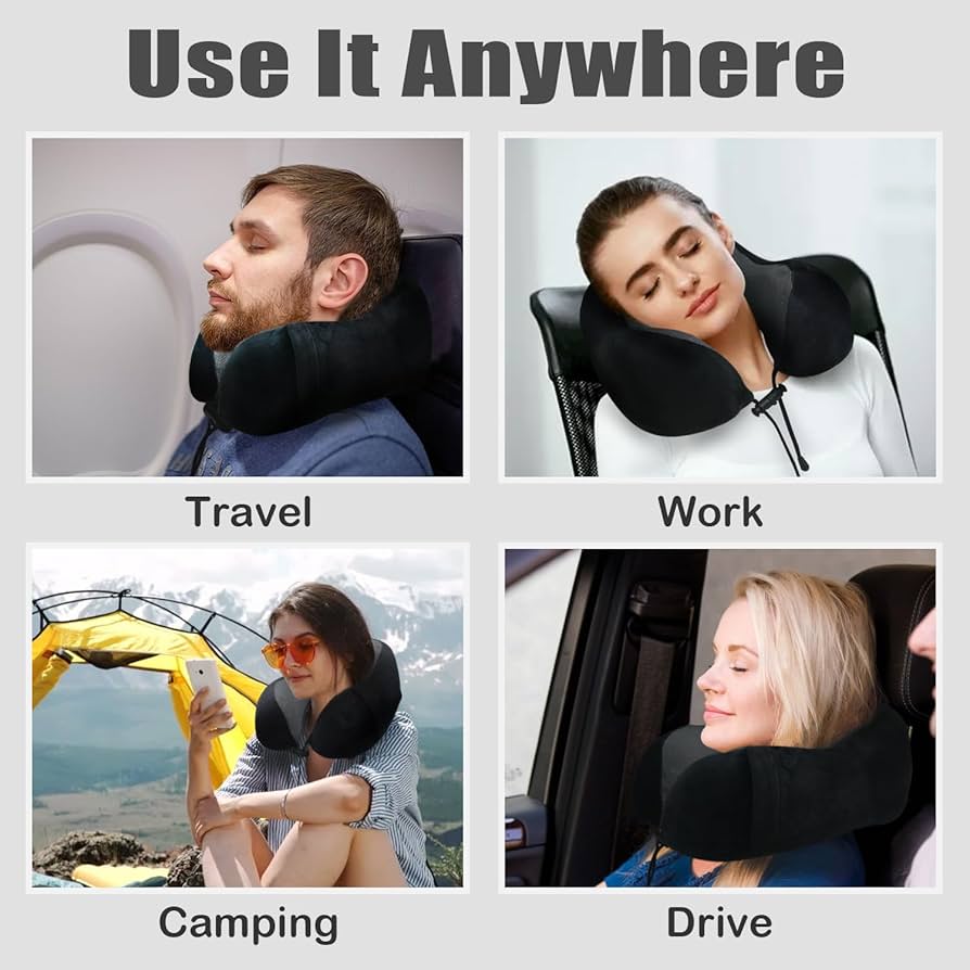 Collazoey Cuscino Da Viaggio, Set Di Cuscini Per Il Collo In Memory Foam Con Maschera Per Gli Occhi, Tappi Per Le Orecchie E Custodia, Cuscino Da Viaggio Dal Design Ergonomico (Grigio Scuro