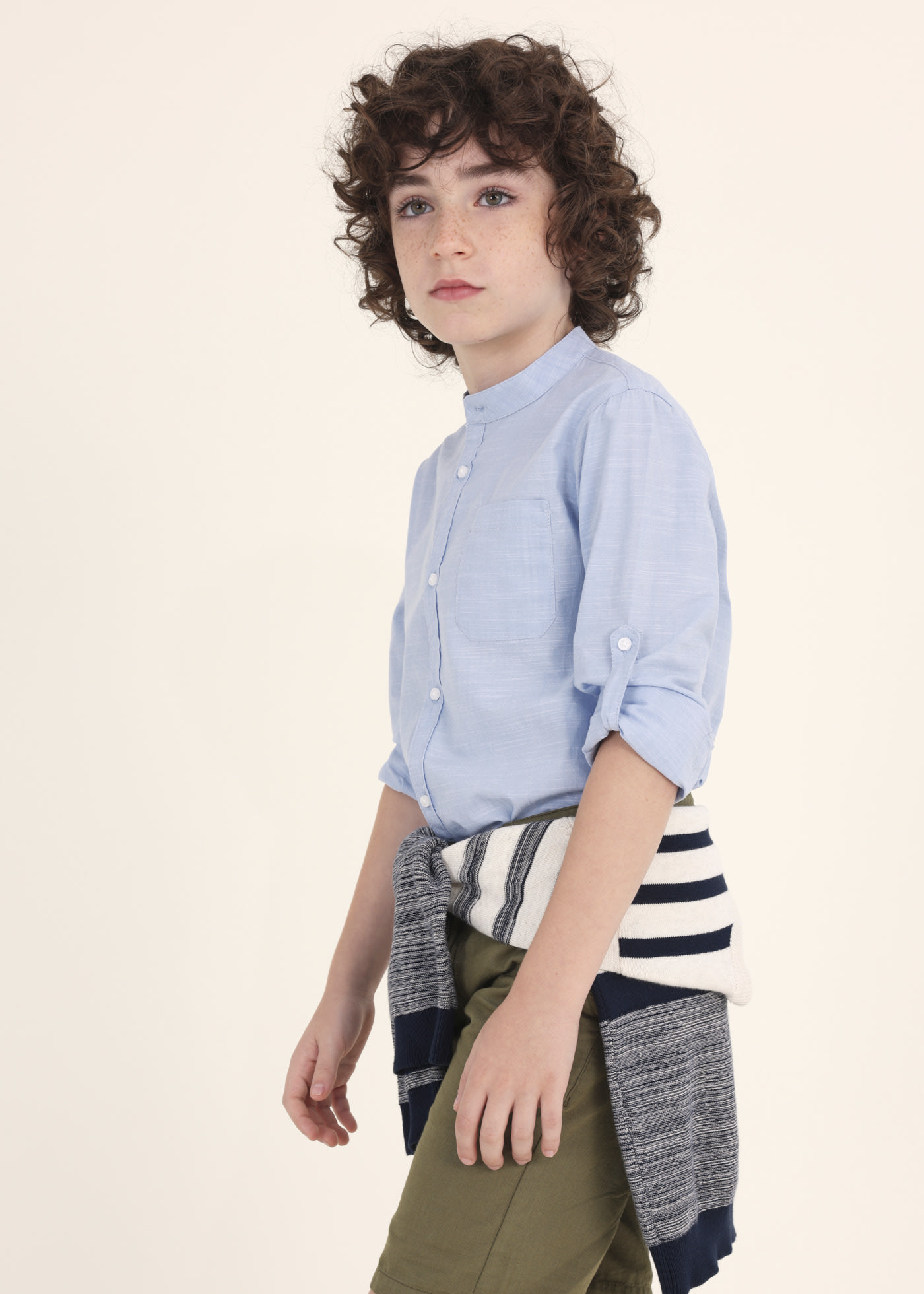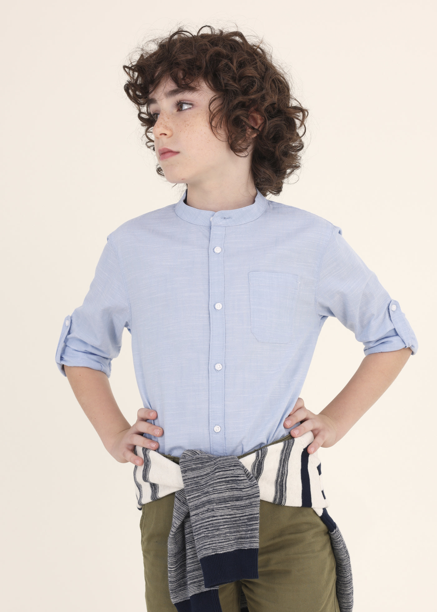 Camicia Manica Lunga Colletto Coreana Neonato Celeste Polvere 2501115080 4